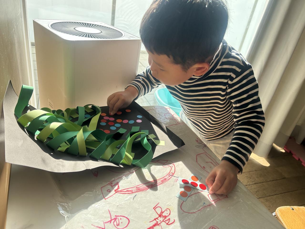 両面テープを剥がす、ねじる、貼るという、何度も何度もやってみたくなる動きに、集中して取り組んでいましたよ💧
