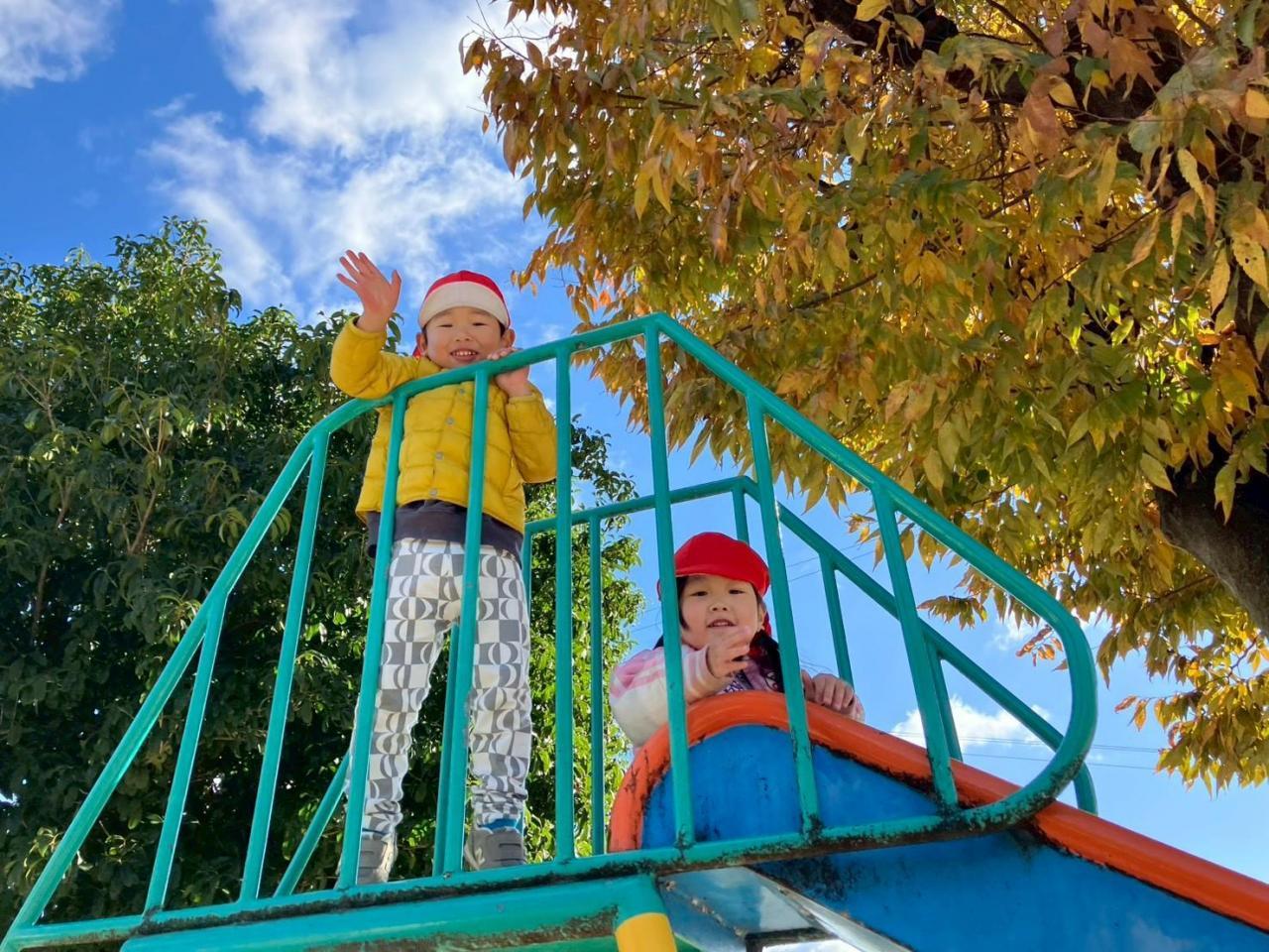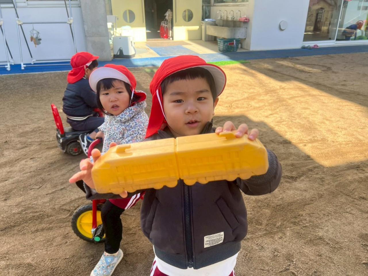 寒さに負けず、戸外で元気に走り回るこどもたち✨太陽の光を浴びると気持ちも身体も大きくなりますね👍