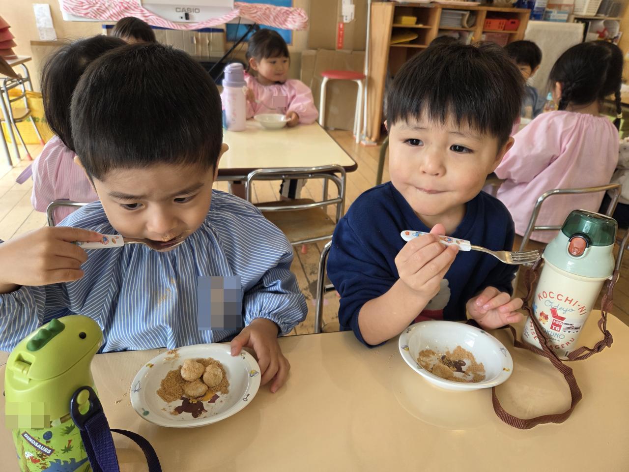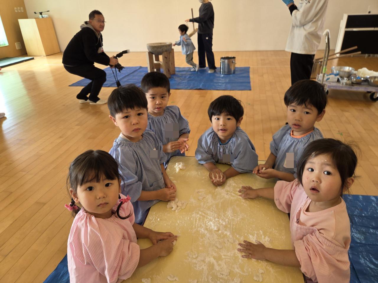 保育者と杵を一緒に持ち、餅をつくことが出来ました✨食べるのも初めての子もたくさんいました✨