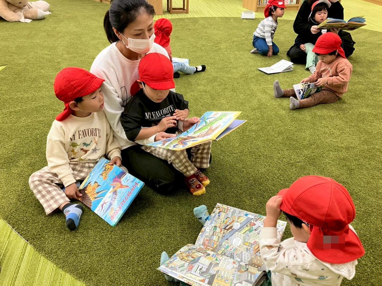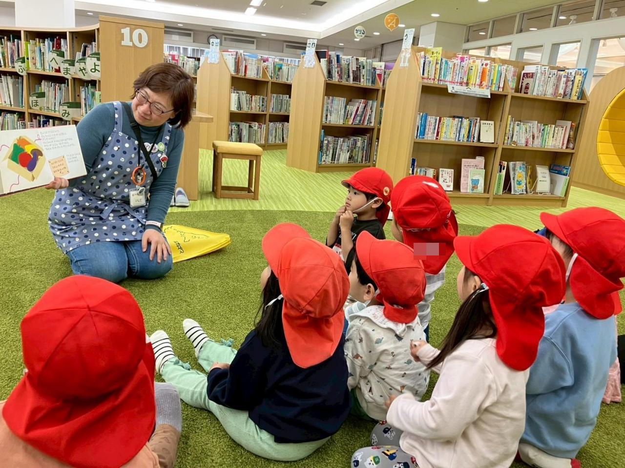 図書館の司書さんに読み聞かせをしてもらいましたよ❗