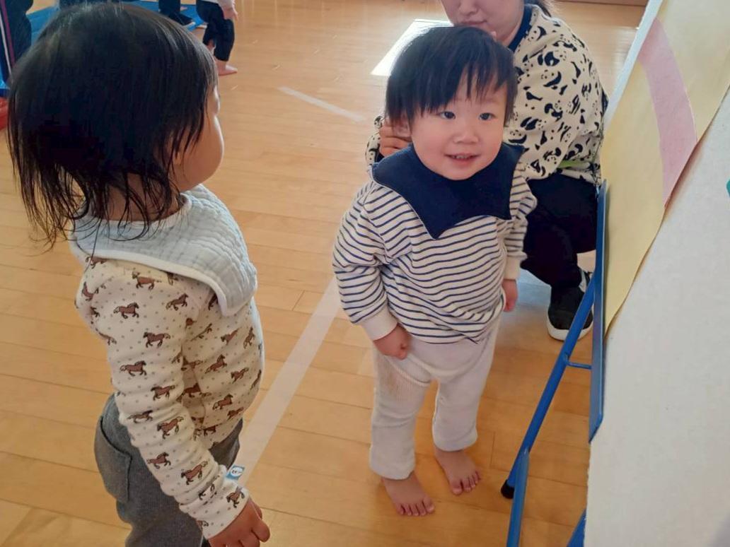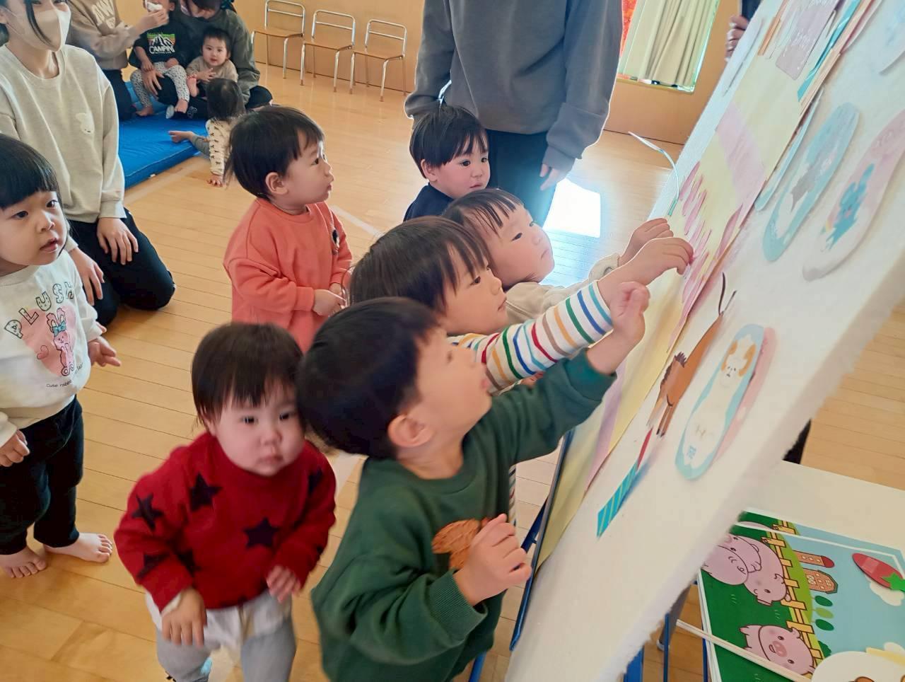 おうまさんやこぶたさんが隠した材料を探すお手伝いは、くまぐみとうさぎぐみのお友だちに手伝ってもらいました🍓