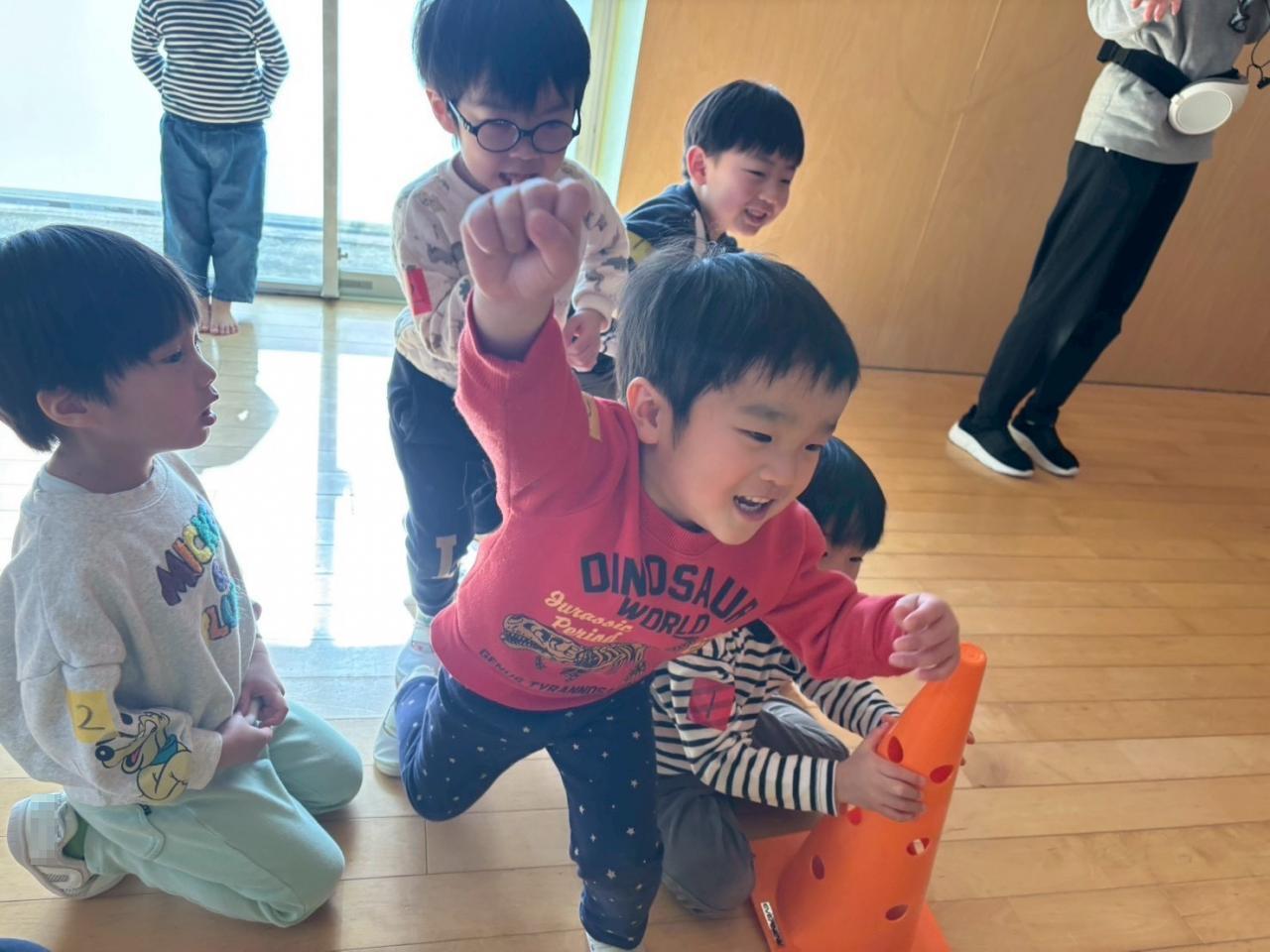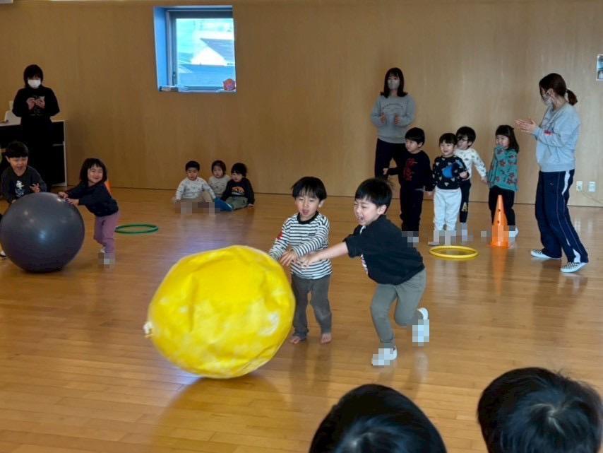その後に、ぱんだ、くま、きりんぐみで赤チームと黄色チームに分かれて