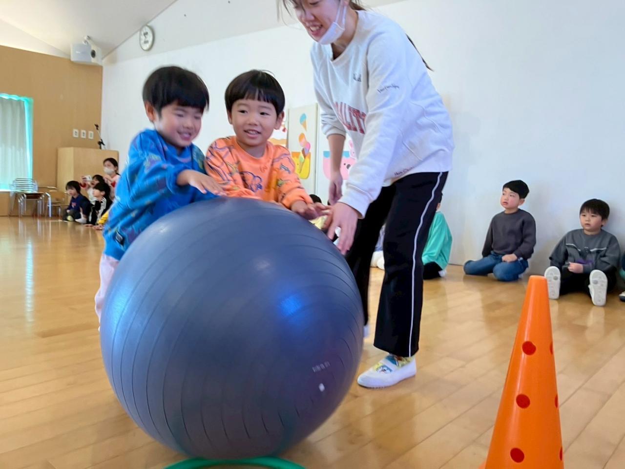 ぱんだぐみさんにはハンデとしてデコボコの大玉でやってもらいました😄