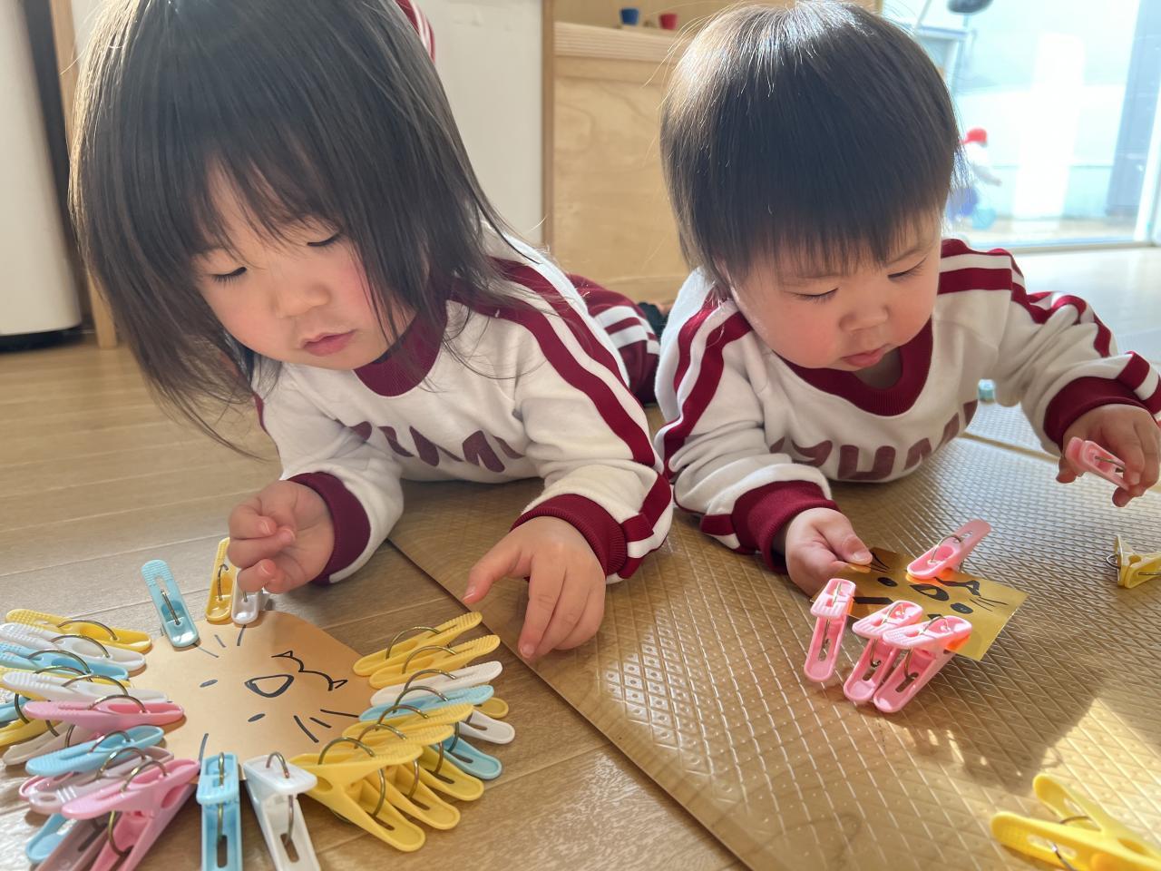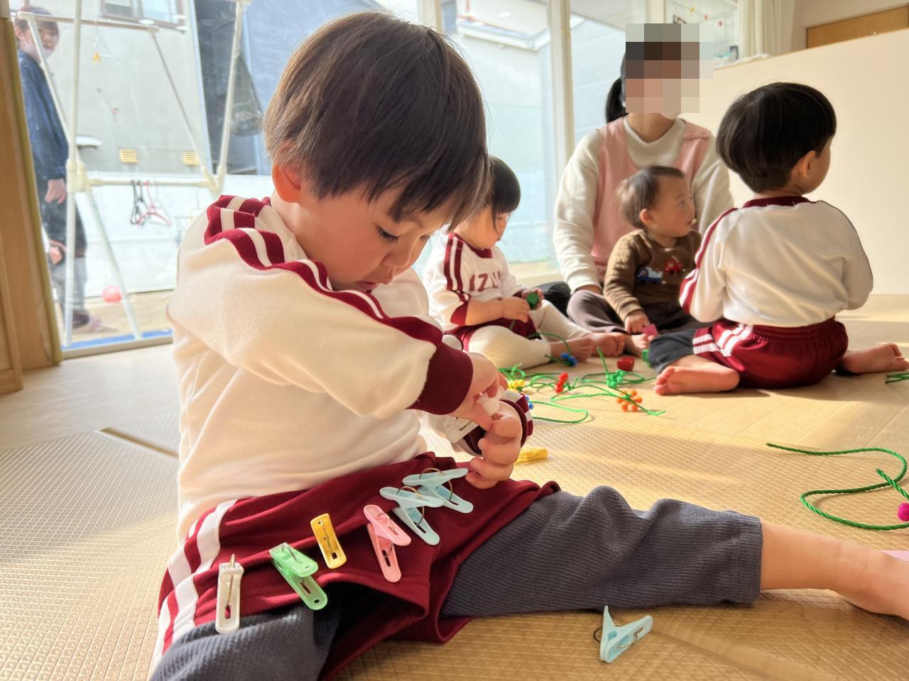 洗濯ばさみや紐通しは黙々と取り組みます💡