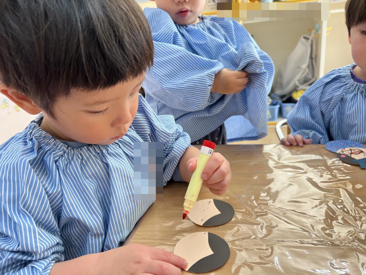 マーカーペンで目と口を描くことに挑戦しました!