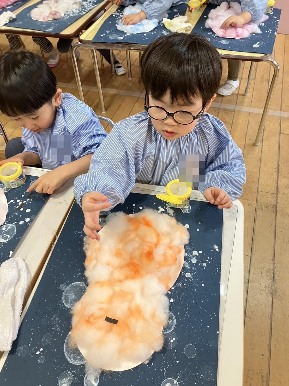 綿の感触を楽しんだり、ストローを使って雪を表現したりしましたよ🤍
