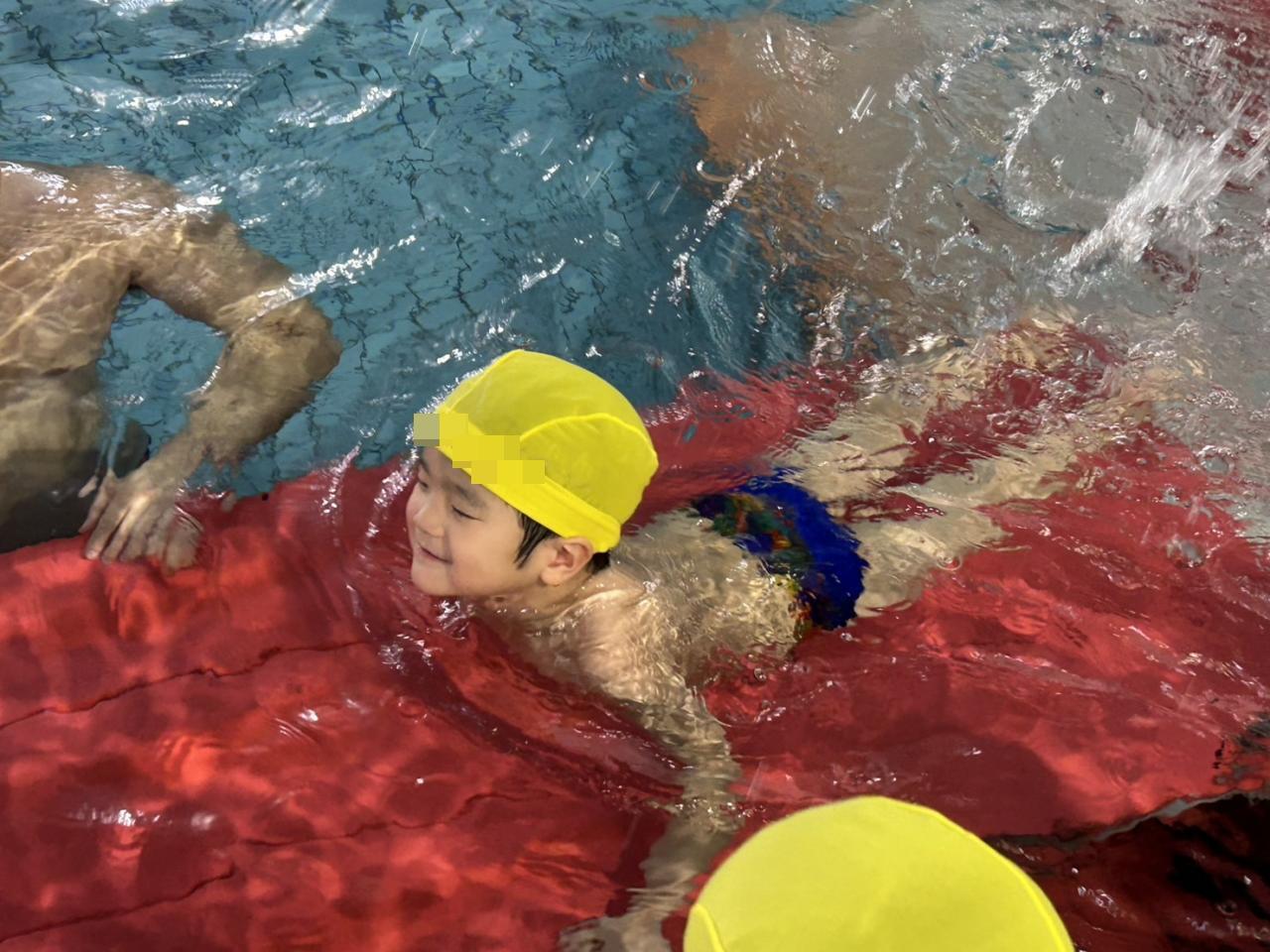 顔に水がかかってもお構いなしで、思いっきりバタ足をします🤣