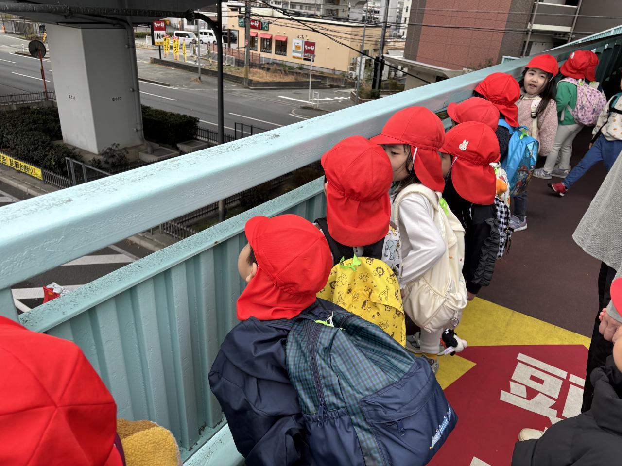 ナックルへの道中は必ず、歩道橋の上から「どんな車が通るかな?」と除きます👀