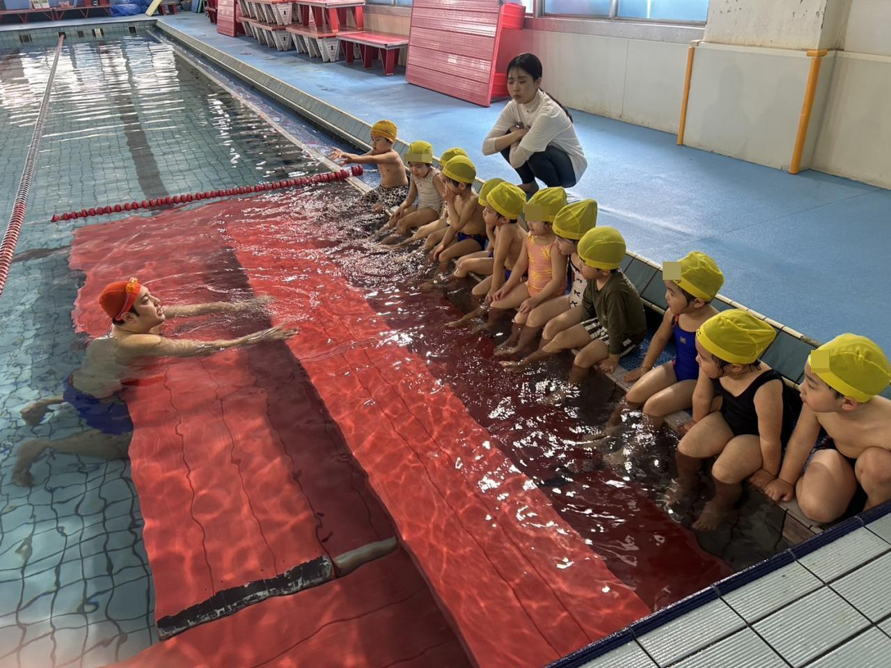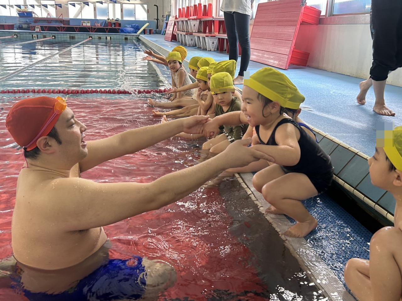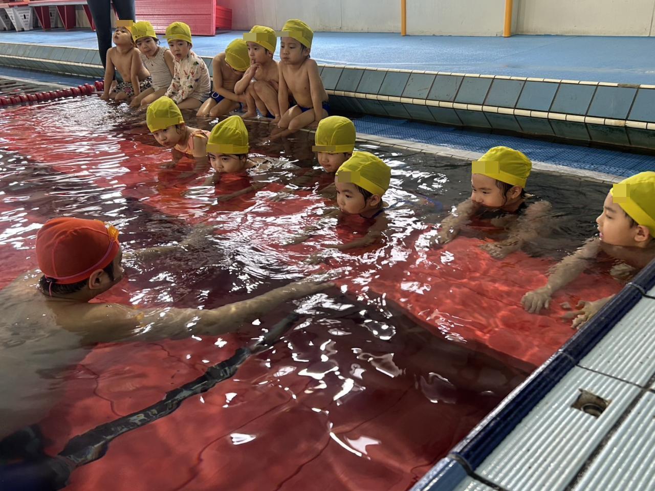 初めてのスイミング保育で初めはドキドキ緊張していた子どもたちでしたが、優しいコーチやお友だちと一緒に色んなことを経験し、だんだんとスイミング保育が楽しみになっていく様子が見られましたよ😊