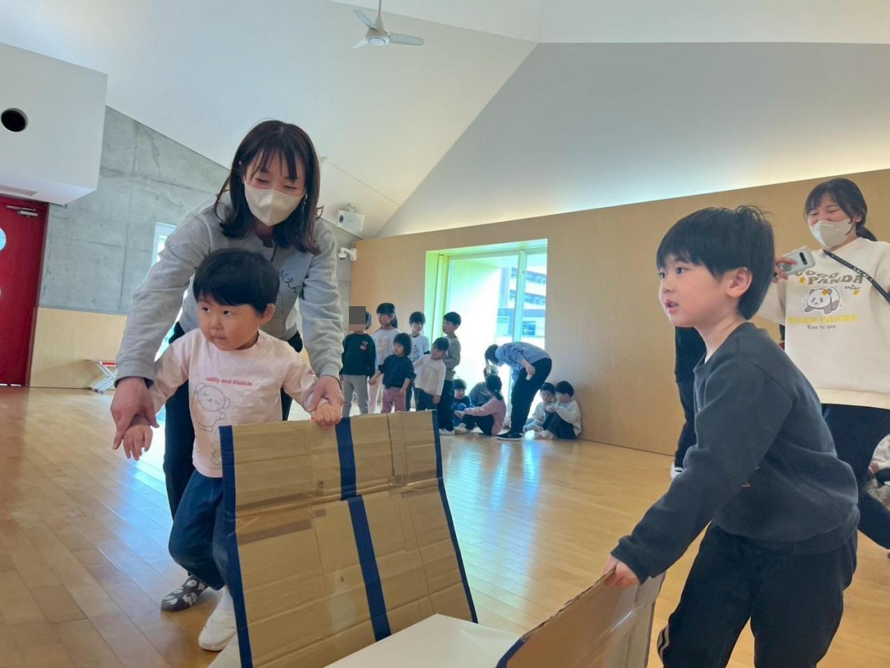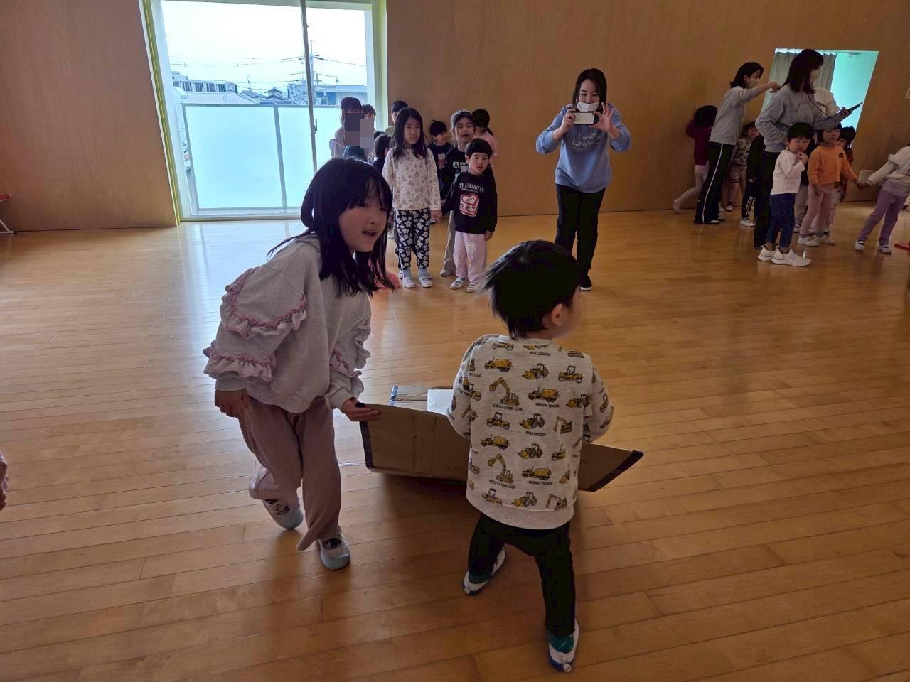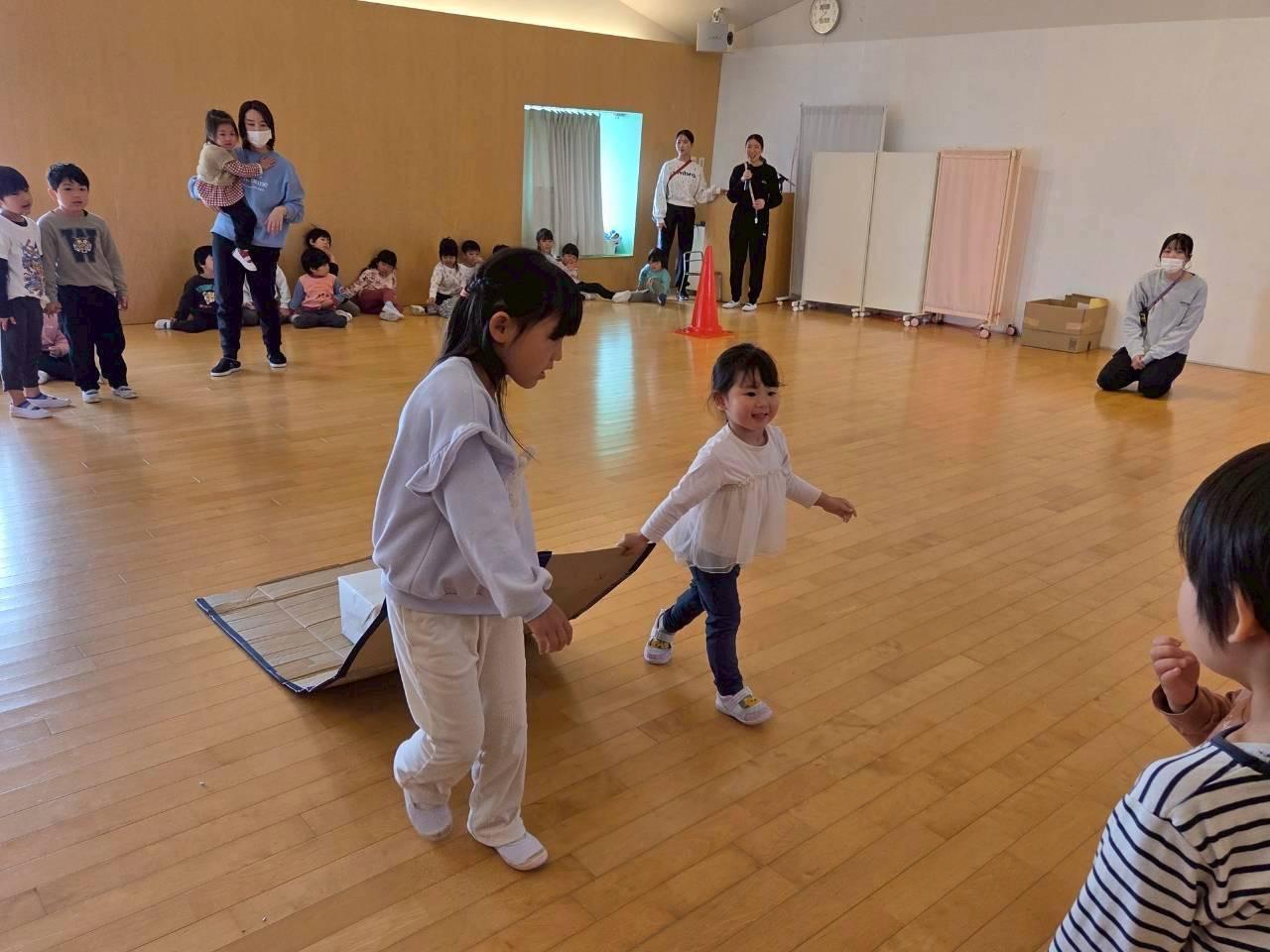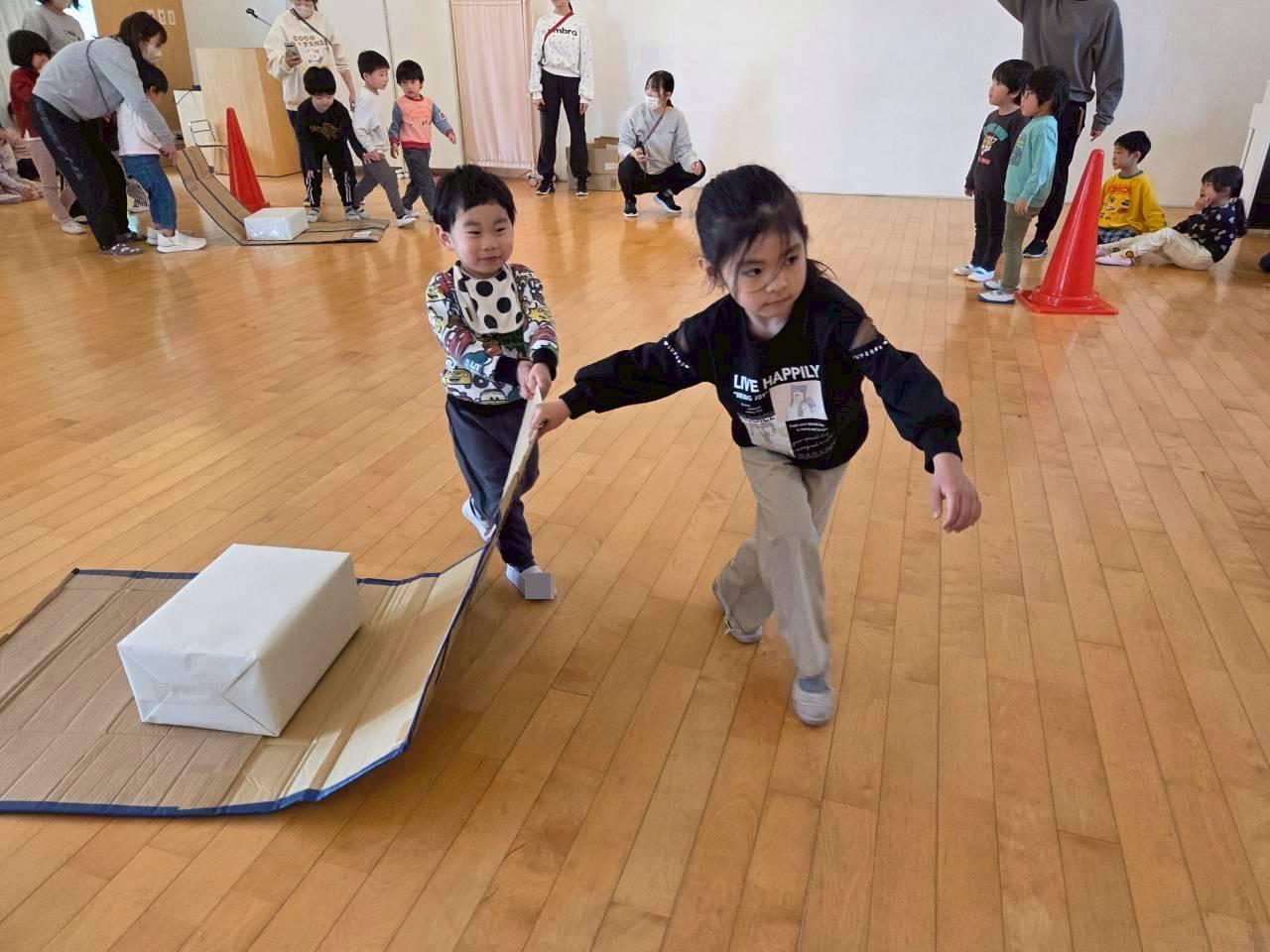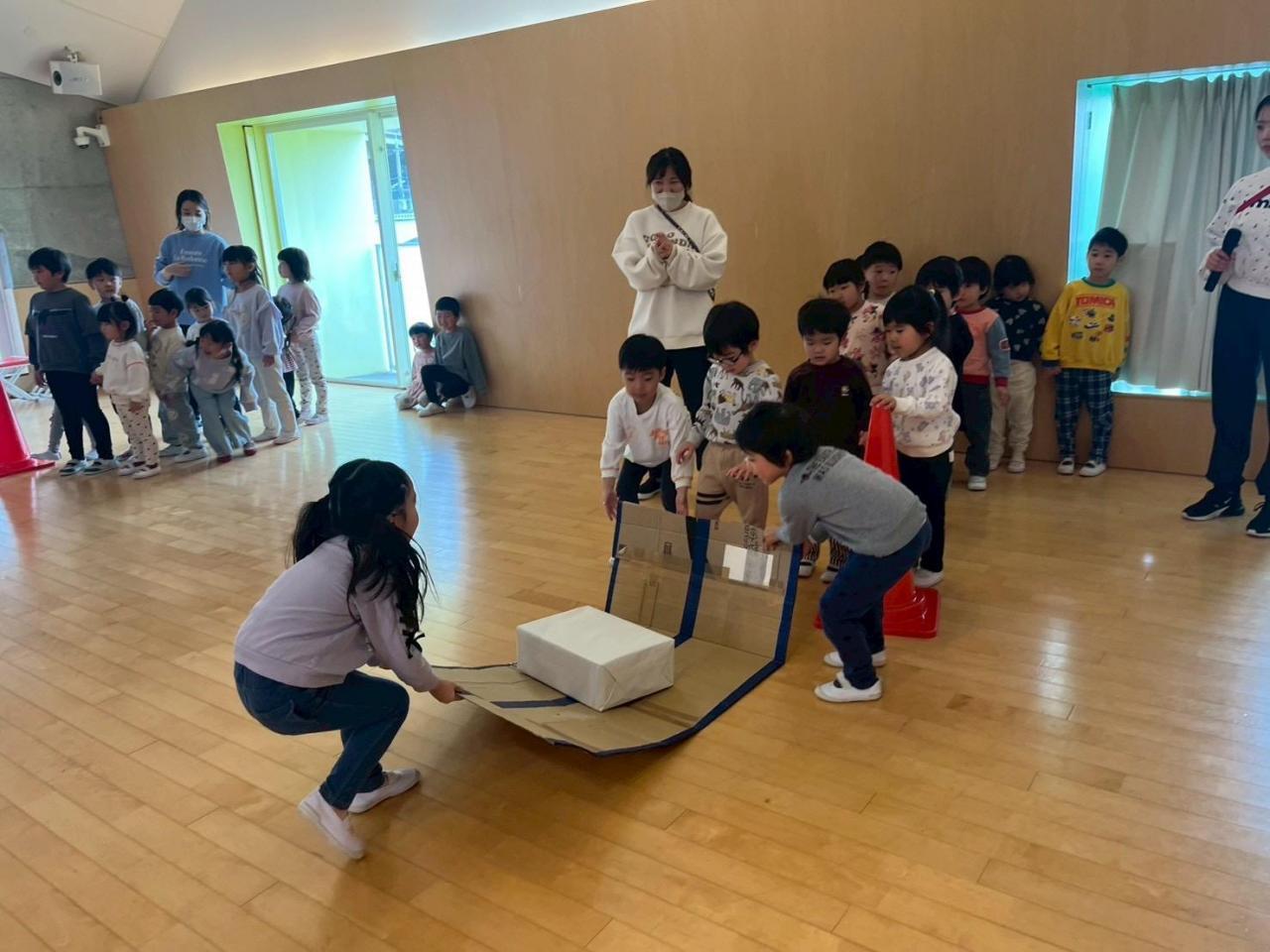 ペアのお友だちと協力しながら荷物を落とさないように運びましたよ😊