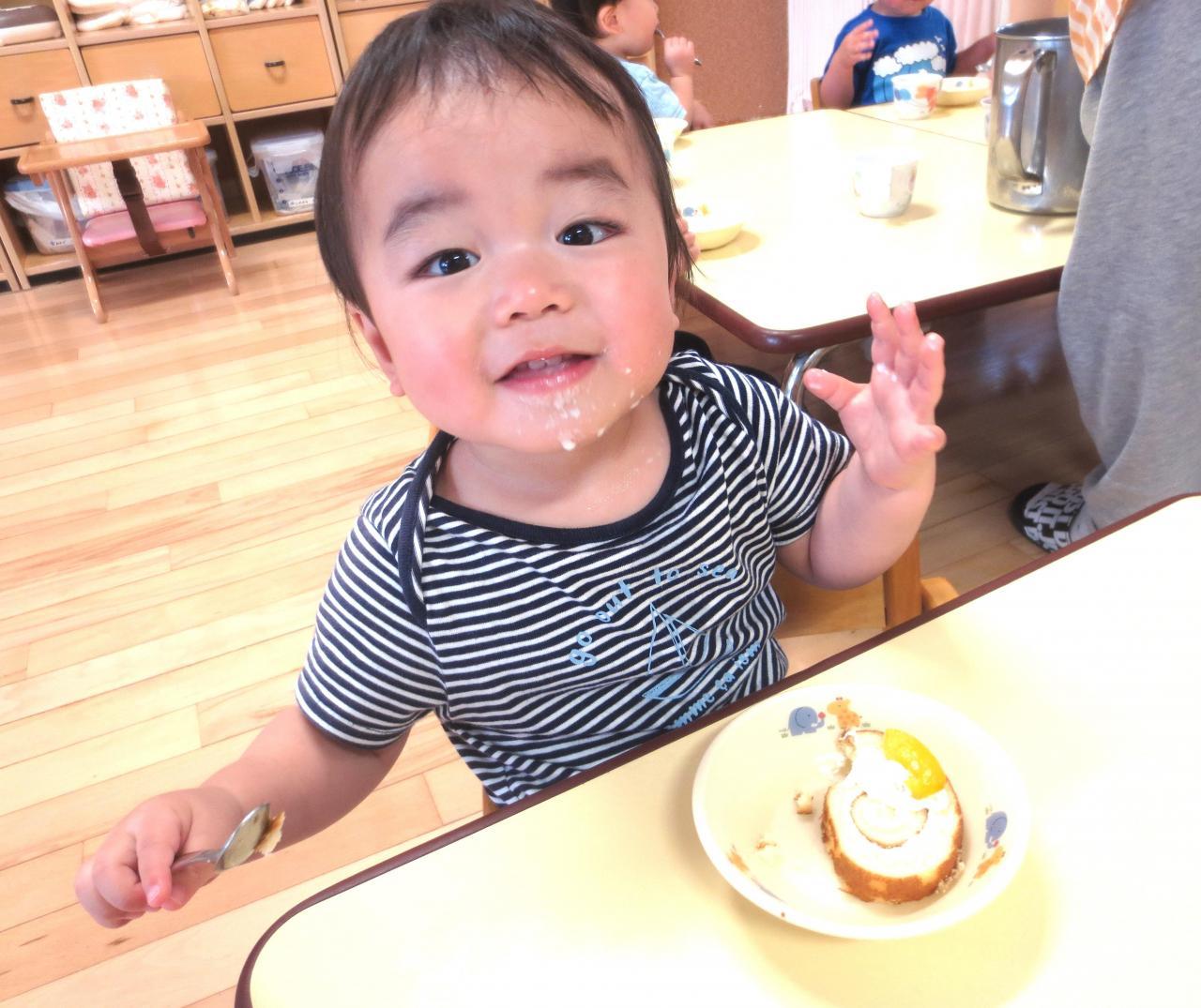 たんぽぽ組さんからきく組さんまで、ゆうぎ室に集まり、お誕生児さんは前に出て一人ずつ「ぼく(わたし)は○○組の▢▢です。△歳になりました!」と発表。みんなからお歌とお祝いの言葉をかけてもらいました☆彡