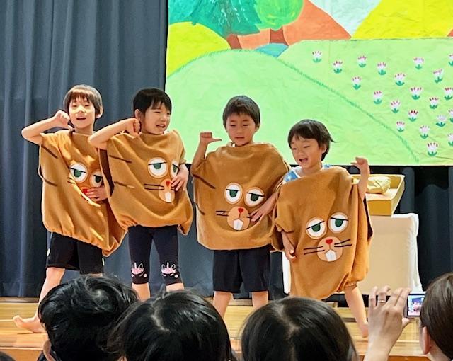 2月の生活発表会の再演ですが、今日は地域の方々をお招きして、の発表だったこともあり、少し緊張していたようです。それでもさすがきく組!上手に、楽しそうに演じてくれていて、みんなとっても楽しく見ていました👍