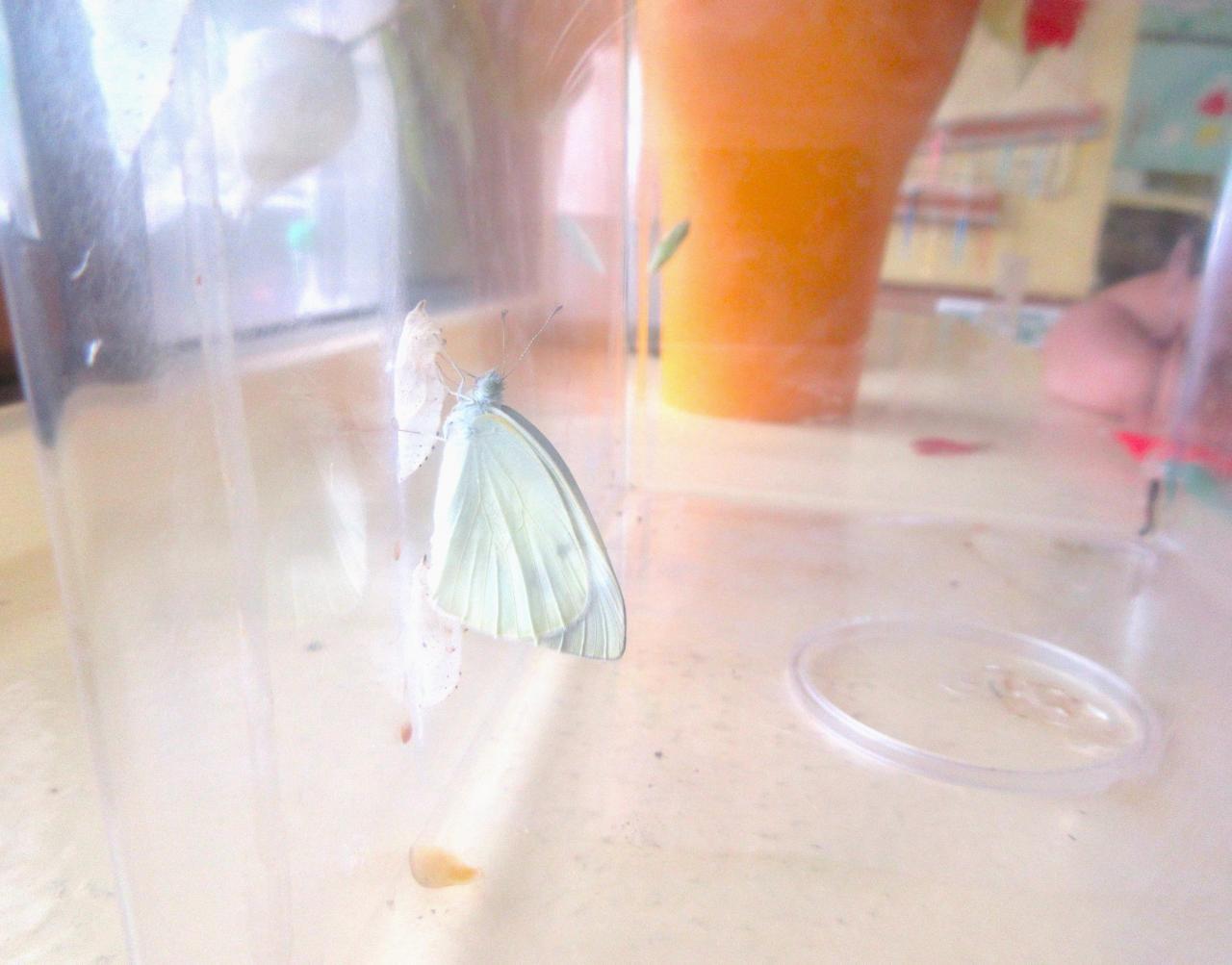 4月中旬ごろ「家で栽培している大根の葉についていました」と、蝶々の卵を頂きました。子どもたち、とてもワクワクしながらお世話を開始!青虫になってからは大根の葉を食べきり、おなかをすかしちゃ大変!とキャベツをあげたりフンのお掃除を頑張った子どもたち。そうこうしているうちに、ついにサナギになりましたよ~❣