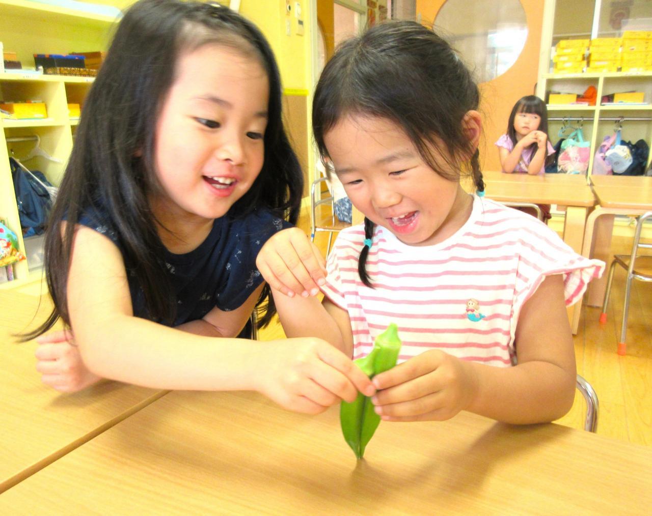 さくら組・・・もも組さんと同じく「玉ねぎの皮むき」に挑戦です。指使いなど1年の違いがやはり成長を感じました。