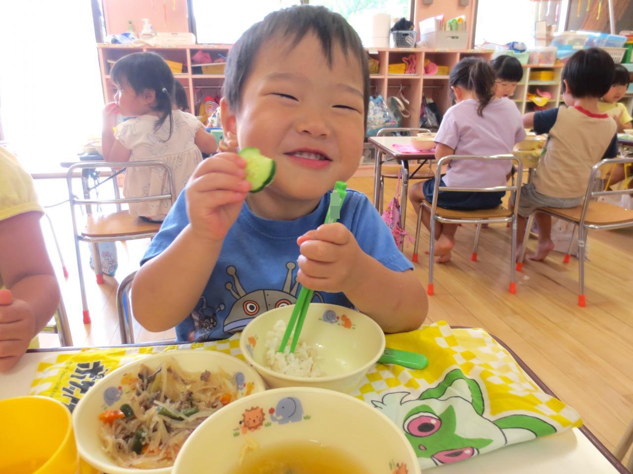 うめ組・・・プランターで育てているきゅうり🥒を収穫しました!