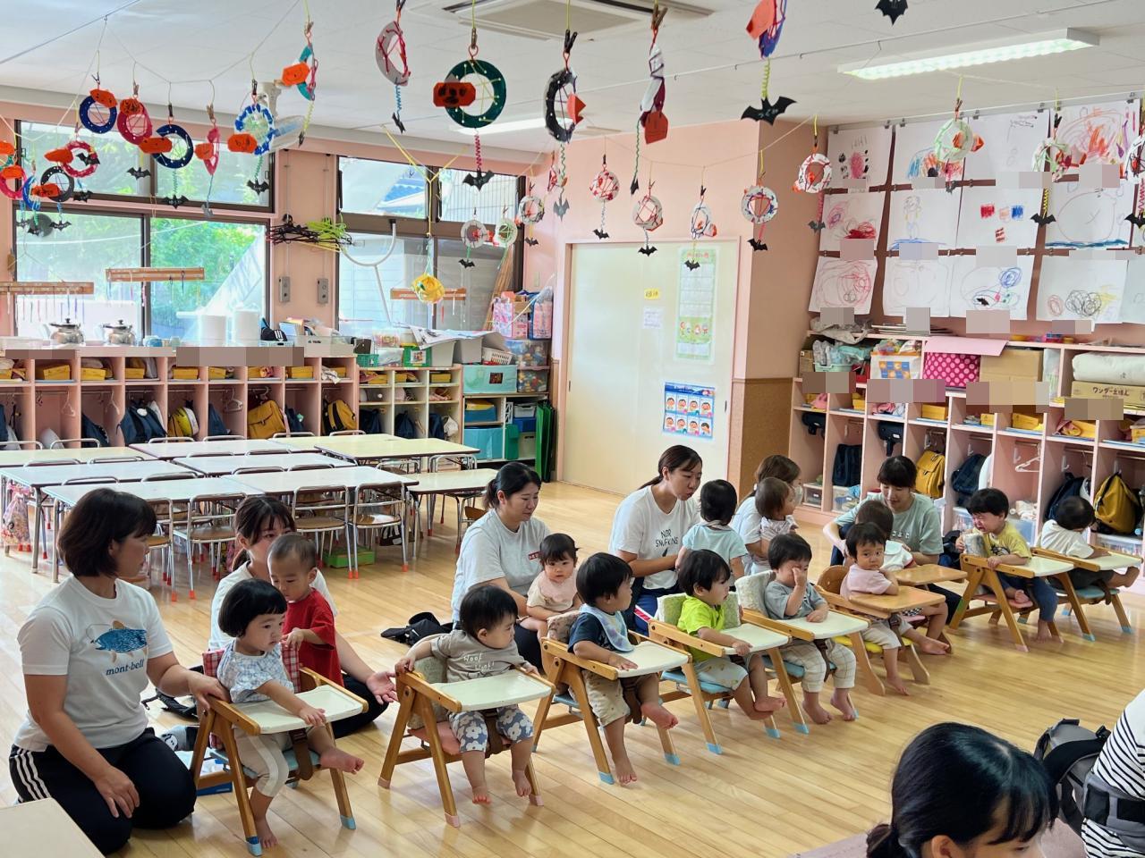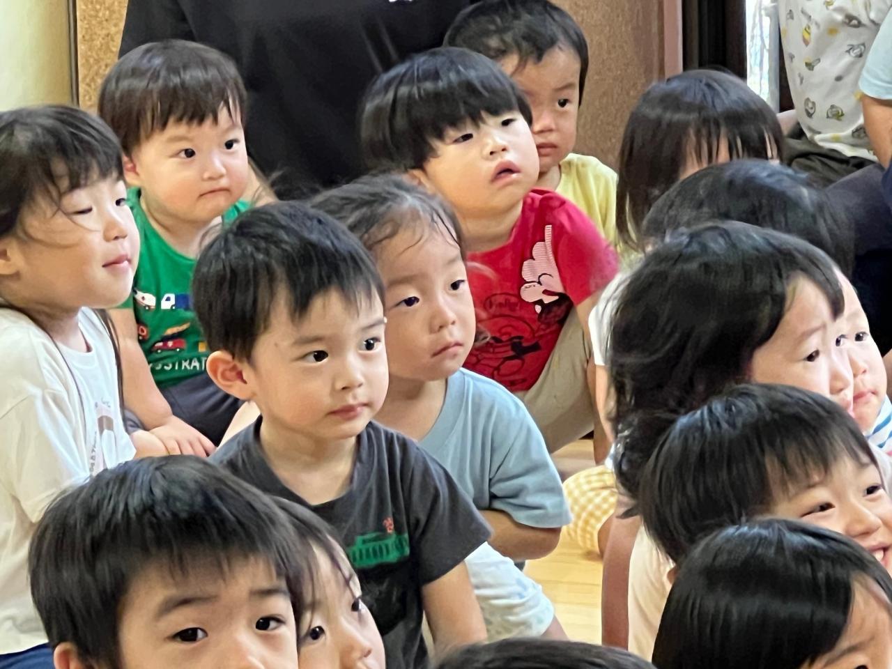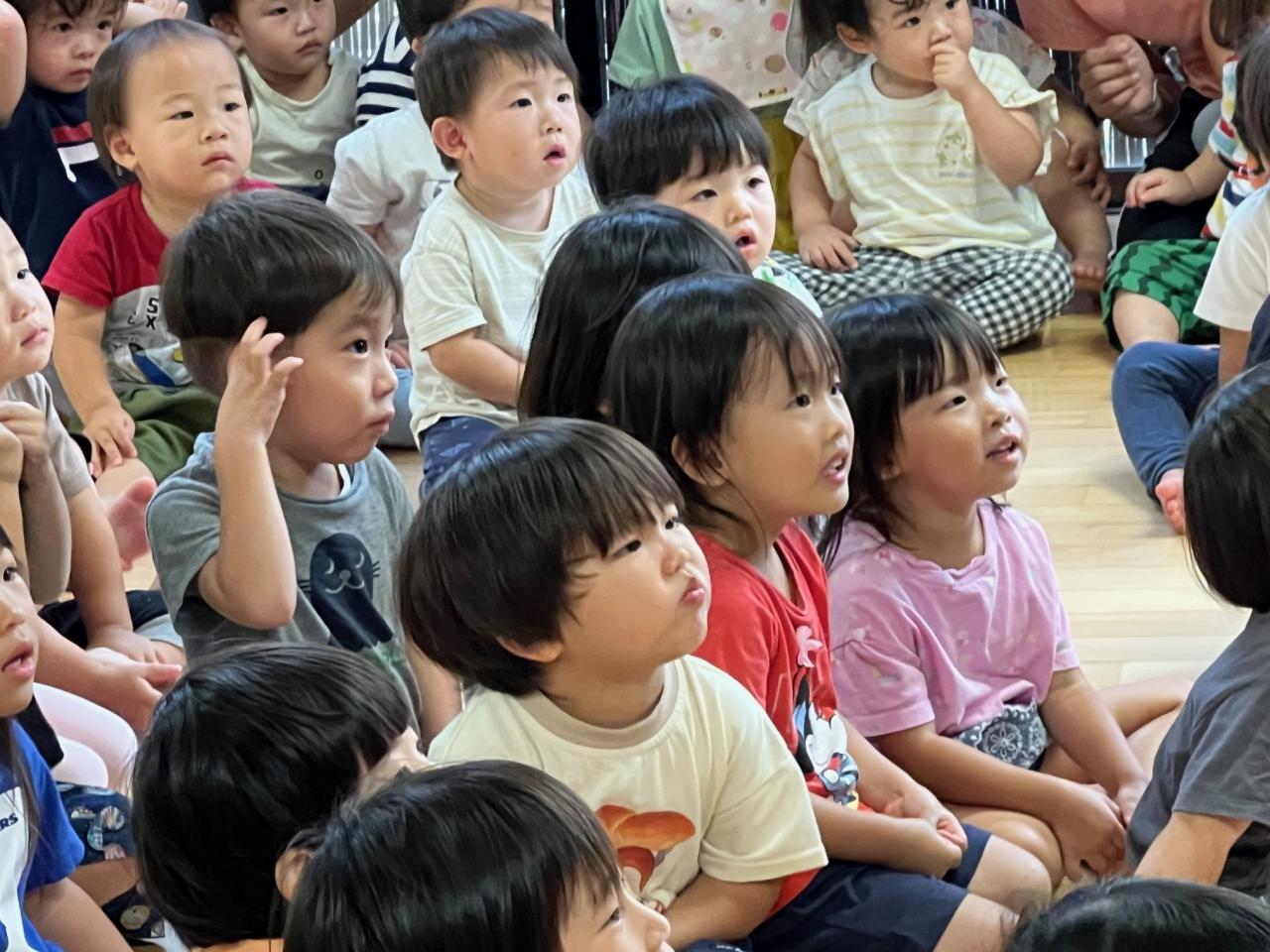 遊戯室で10月のお誕生会と紙芝居屋さんによるお話を楽しみました🥰いつもと違う雰囲気の紙芝居に子どもたちは吸い込まれるように見入っていました❗素敵な1日になったね✨10月生まれのお友だち、お誕生日おめでとう🎂
