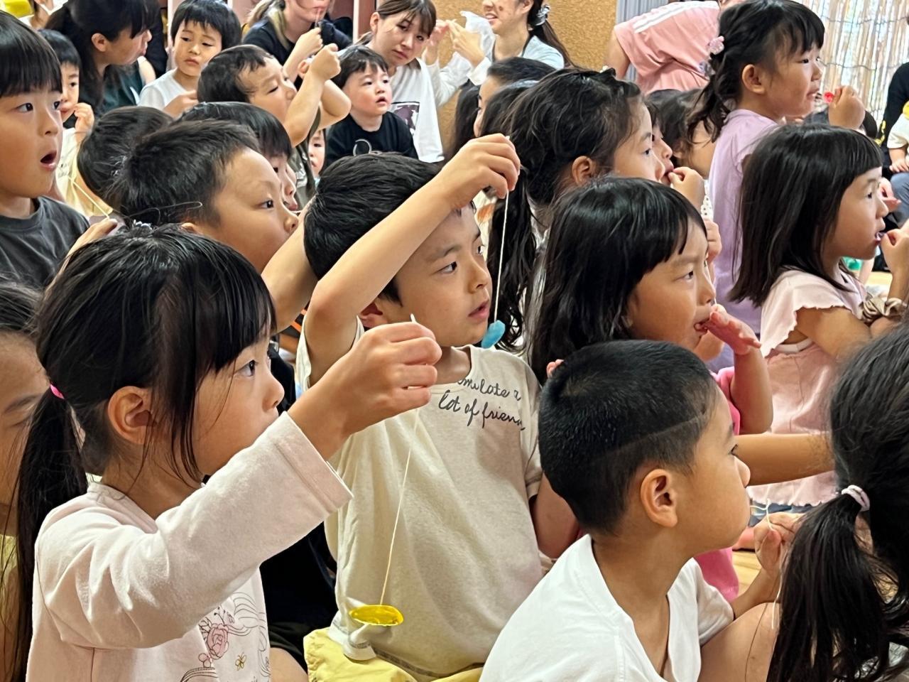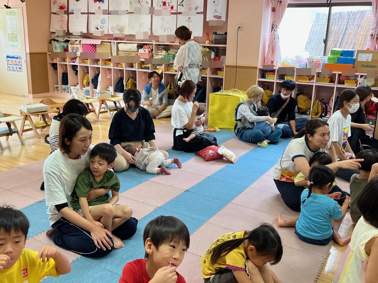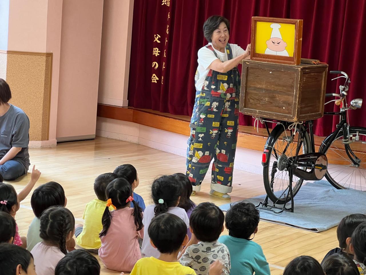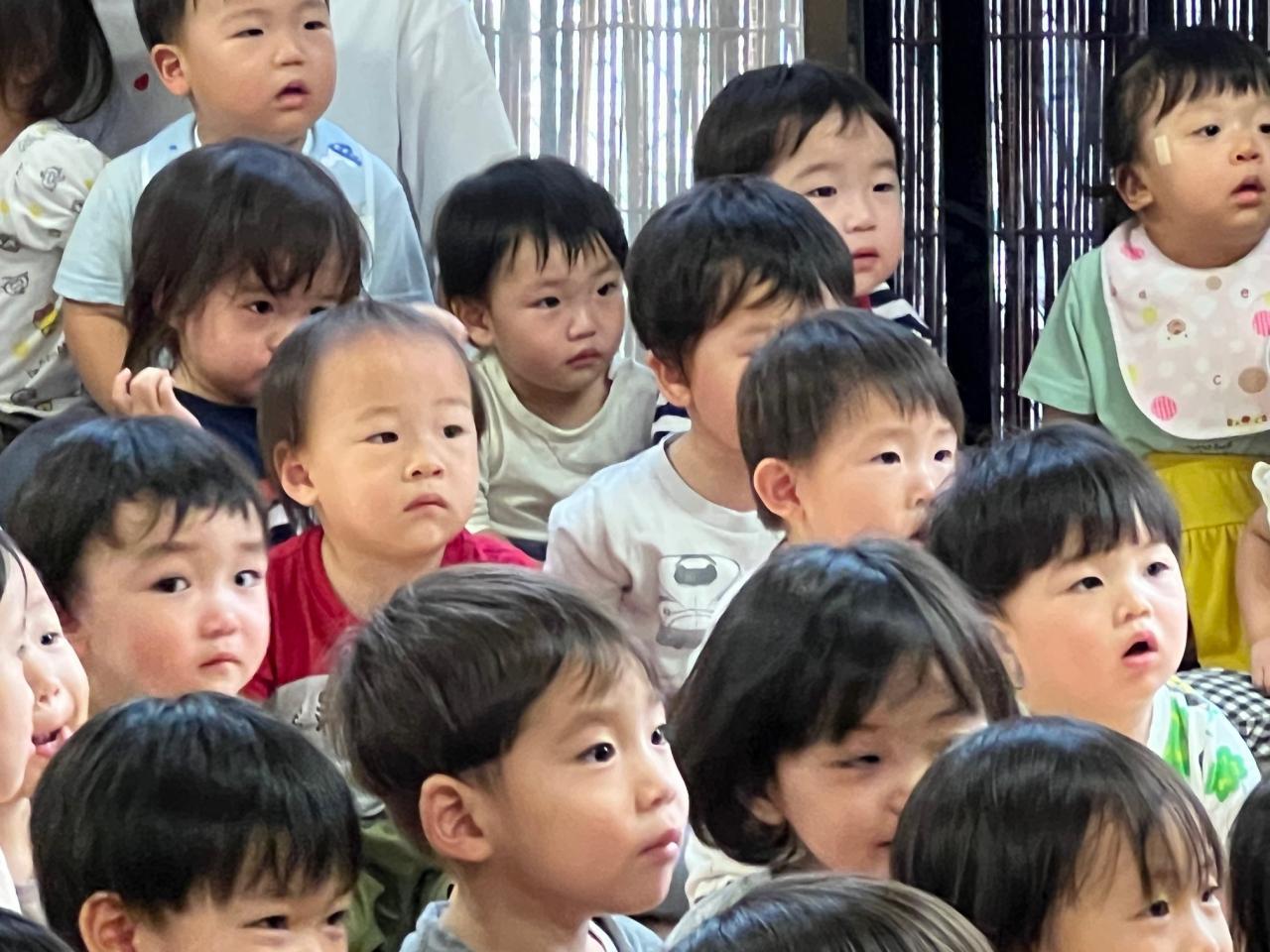 遊戯室で10月のお誕生会と紙芝居屋さんによるお話を楽しみました🥰いつもと違う雰囲気の紙芝居に子どもたちは吸い込まれるように見入っていました❗素敵な1日になったね✨10月生まれのお友だち、お誕生日おめでとう🎂