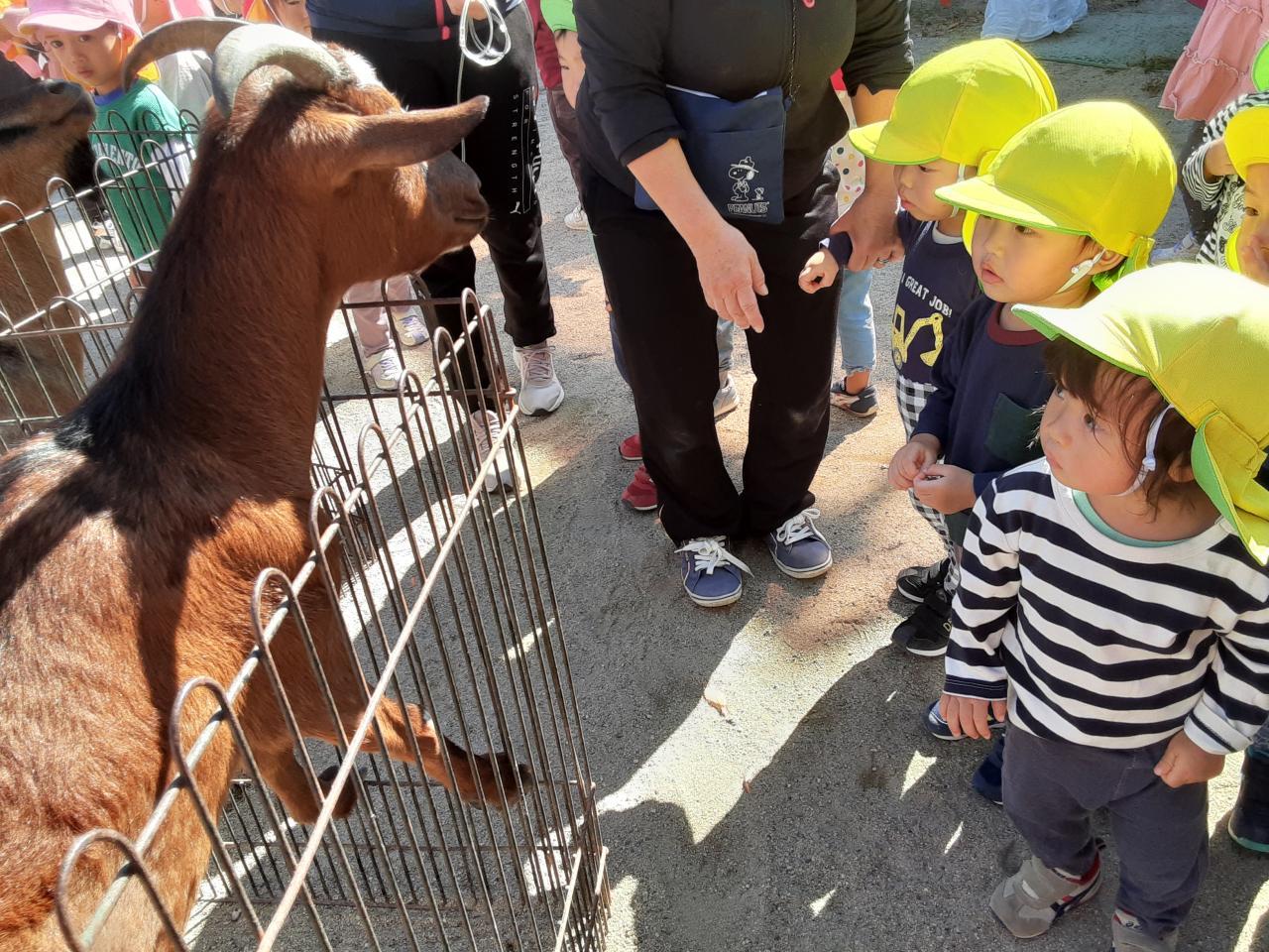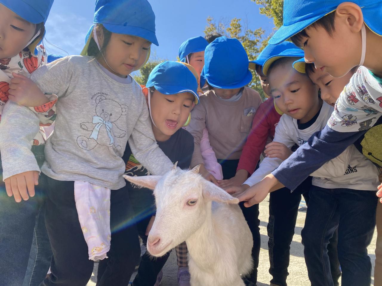 赤ちゃんヤギがいましたよ✨大きいヤギさんにはちょっぴり緊張していたお友だちも赤ちゃんヤギには積極的に😊