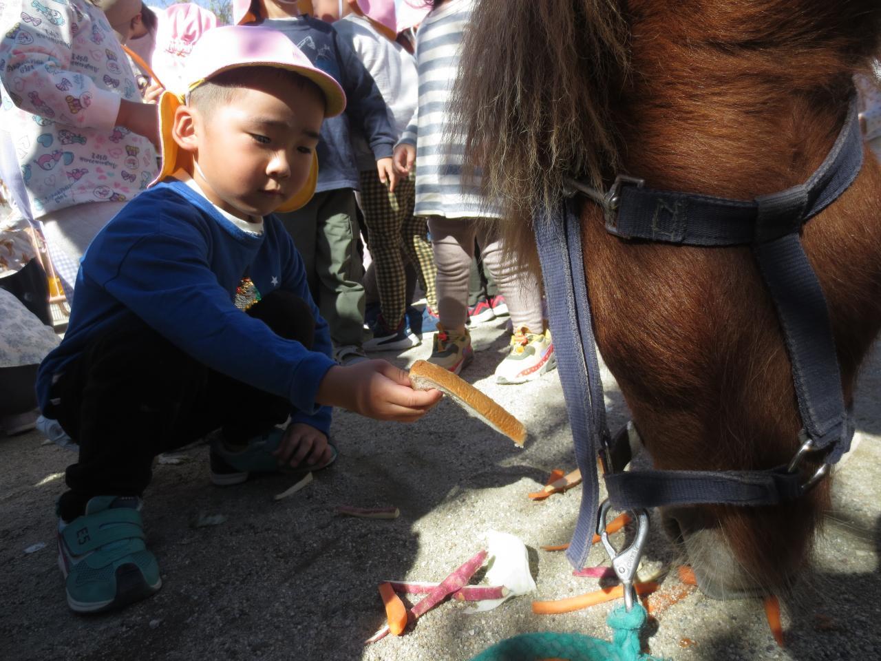 お馬さんにも、エサをあげたよ🐎