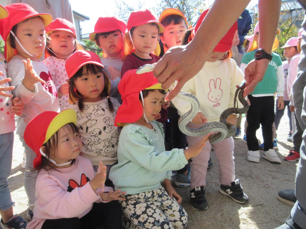 少し怖いけれど、ヘビさんも触ってみました💕🐍