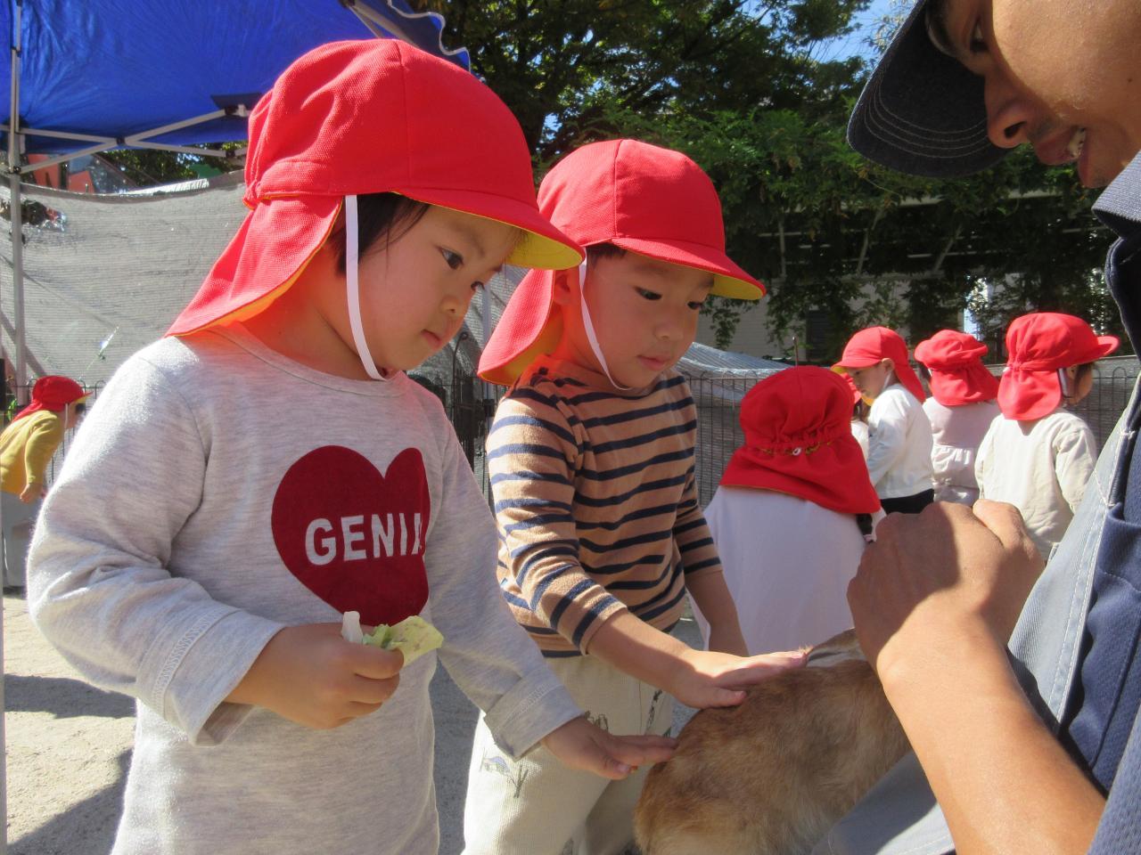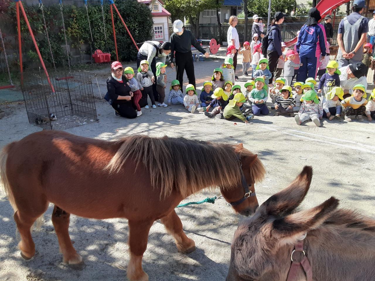 初めての移動動物園❗朝、外から聞こえてくる鳴き声に興味津々のたんぽぽ組さんでした😄
