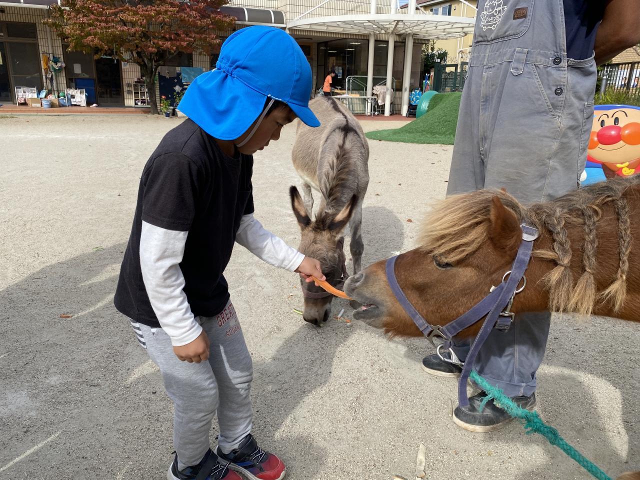 馬さんロバさんたくさんお野菜食べてくれてみんな大喜び🐴
