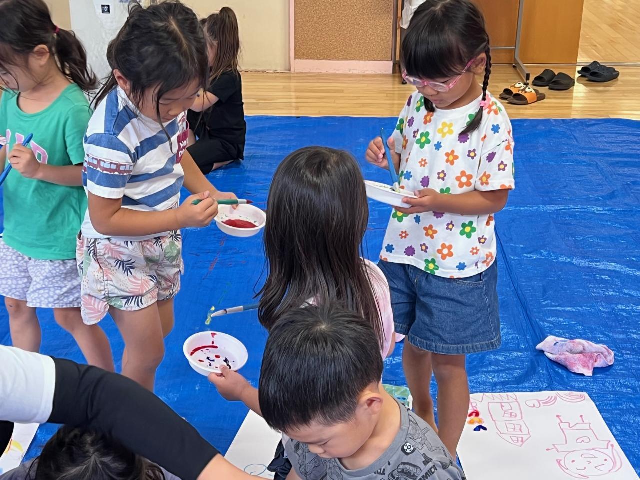 描きたいものを4色(白、赤、青、黄)の絵の具で自由に彩ろう❗❗