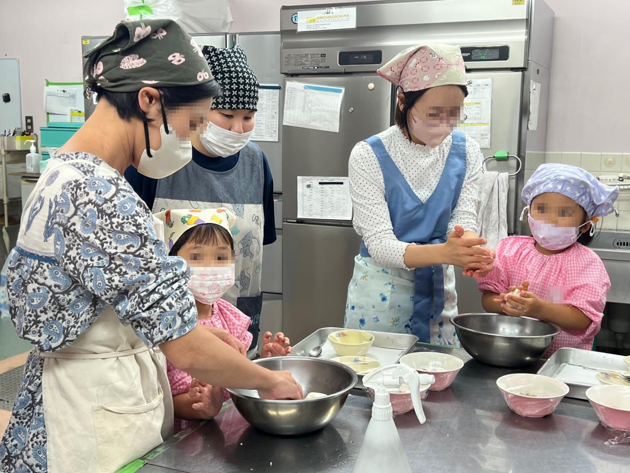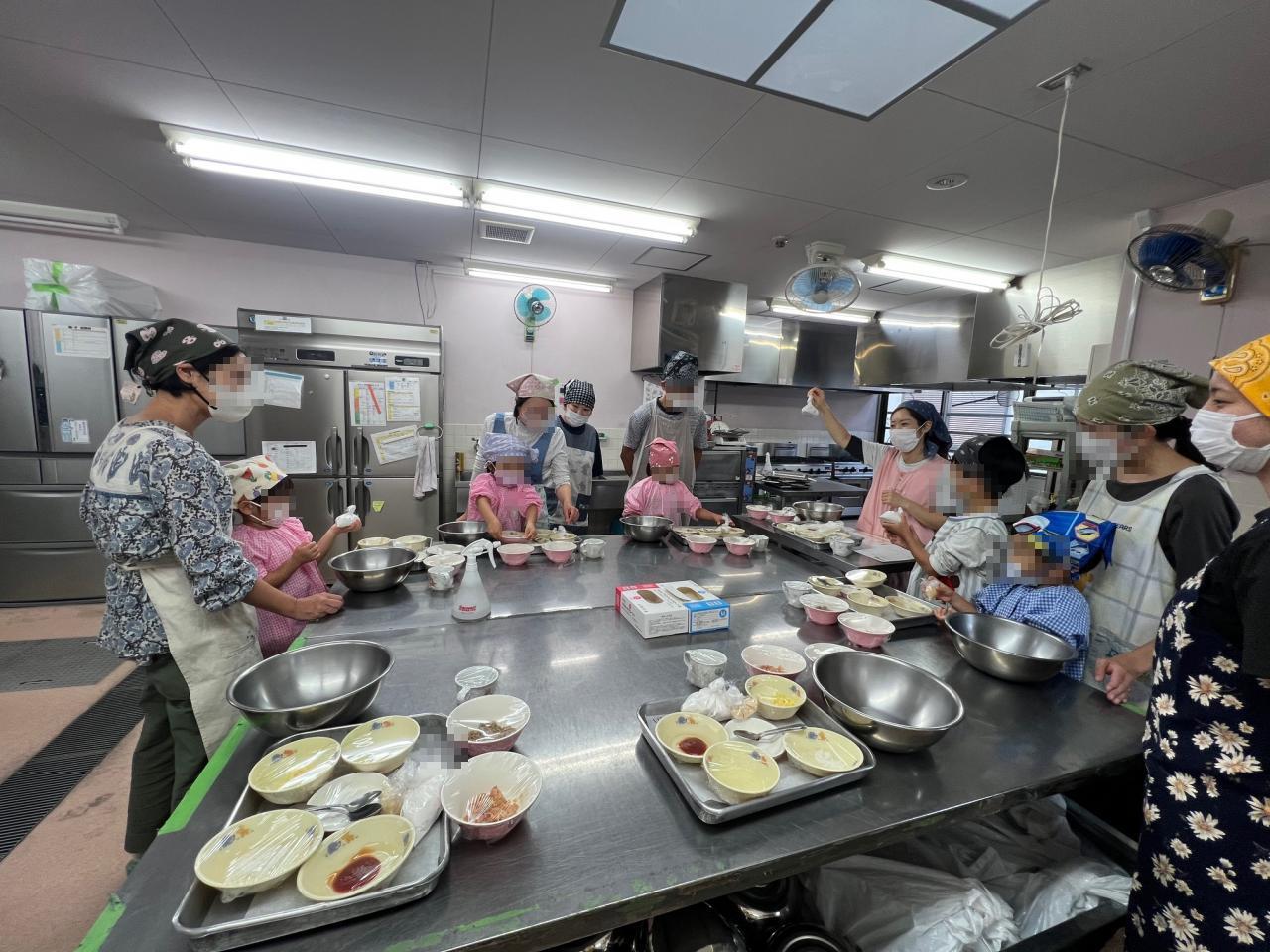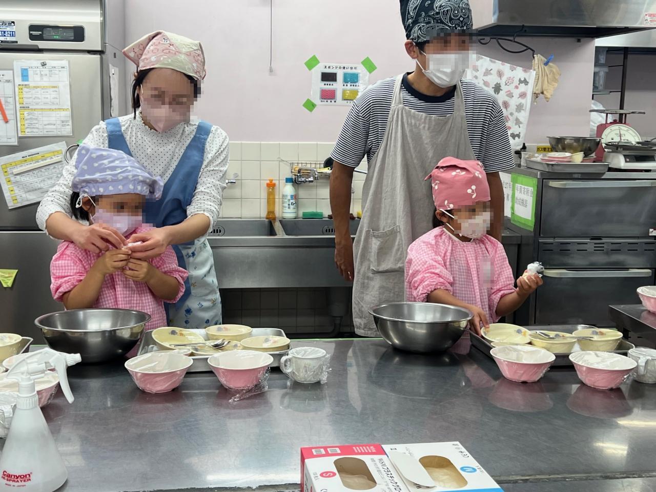 今日は、保育園の給食室で親子でクッキングのイベントがありました❗