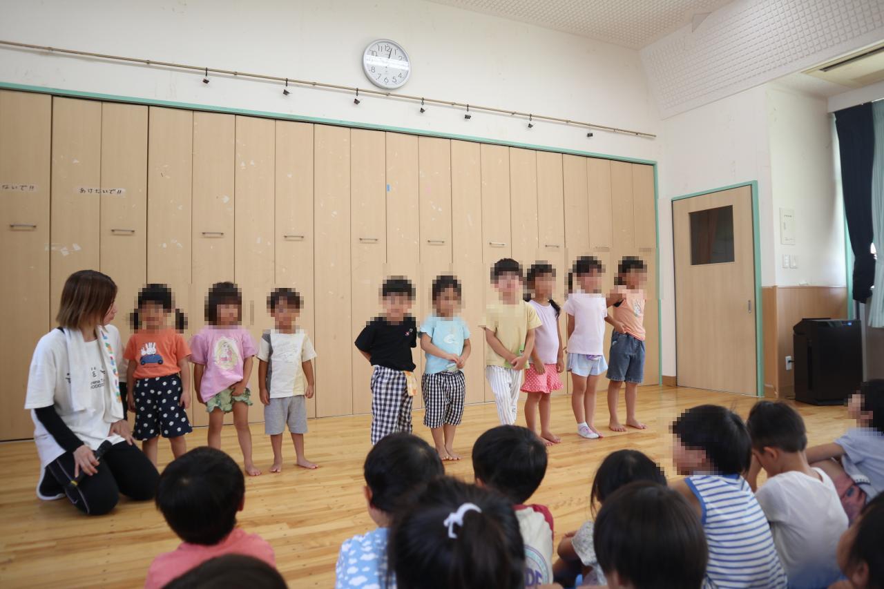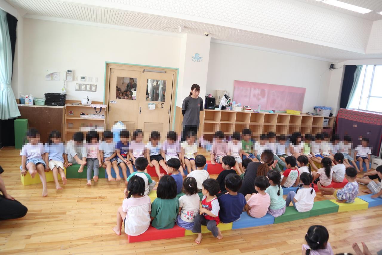 今年度のプール・水遊びは明日のゆり・ひまわり組のプール参観を残すのみとなりましたので、1日早いですが幼児クラスが集まってプールじまいを行いました。