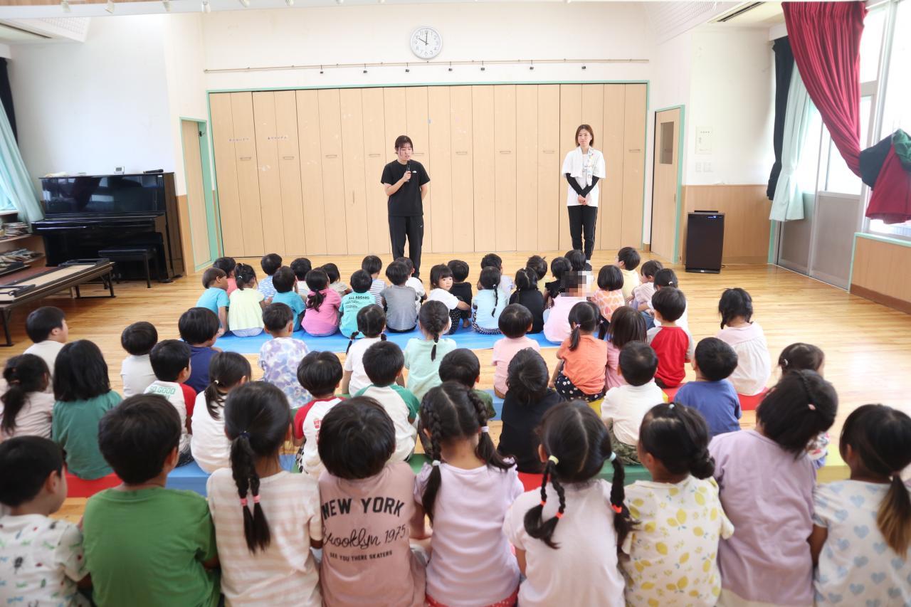 各クラスで目標にしていたことや頑張ったことを発表してくれたり、ひまわり組は遊戯室ですが、目標として頑張ってきたバタ足を披露してくれましたよ!!