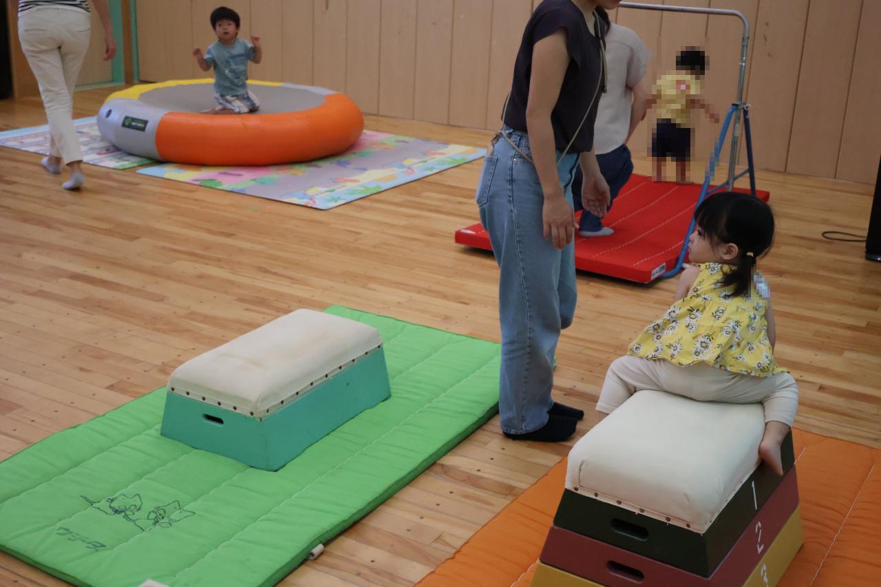 順番に回ったり、お気に入りのものを繰り返し遊んだりと、参加していただいたお子さんはもちろん、保護者の方も一緒に運動をして遊びました!