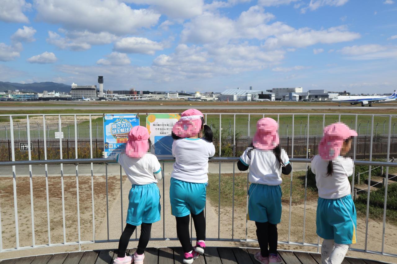 朝は気温も低かったですが、天候にも恵まれて、飛行機を間近に見ながら、2クラス一緒に遊遊びました✈