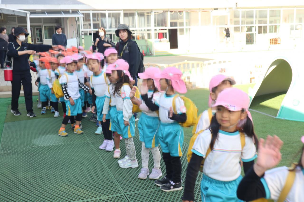 普段より早めの時間でしたが、他のクラスに見送られながら、元気に出発しました!!