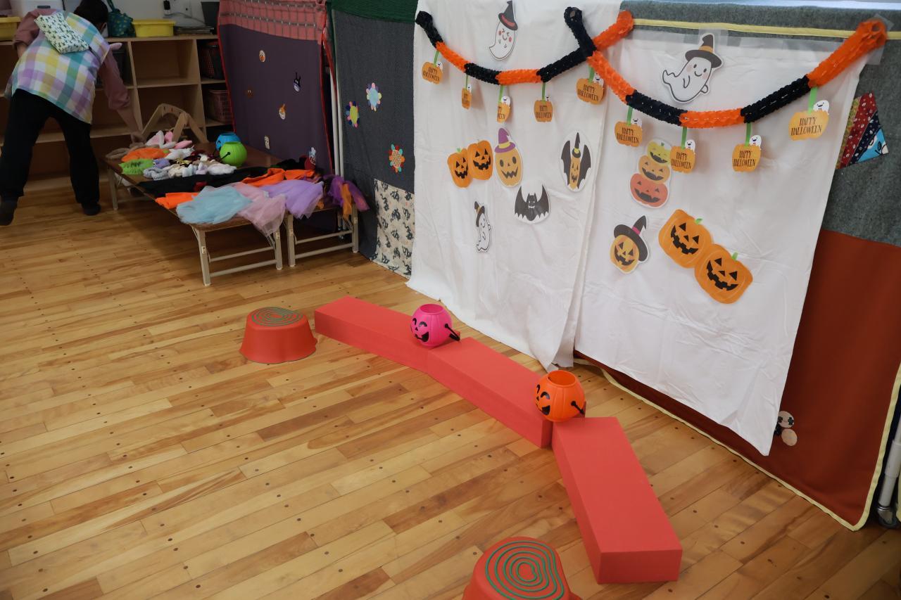 そのあとは、秋祭りをイメージして、ミニゲームのもぐらたたきや、ボーリング、すくい遊び、仮装コーナーなど、ミニブースを設けて、それぞれの遊びを楽しみました!