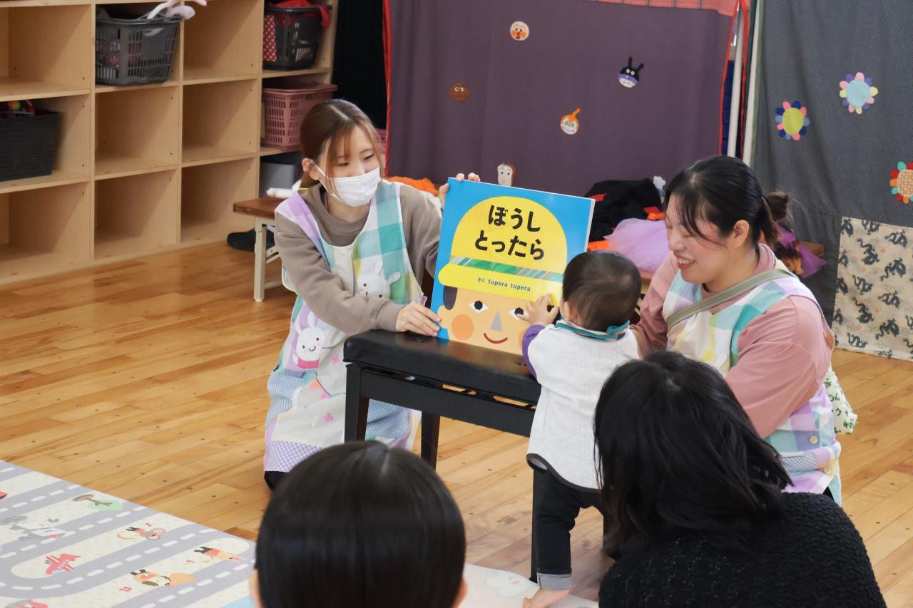 お祭りごっこを楽しんだ後、最後は絵本タイムです。