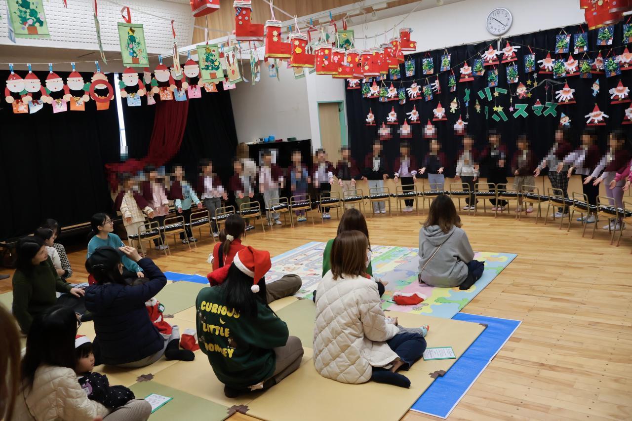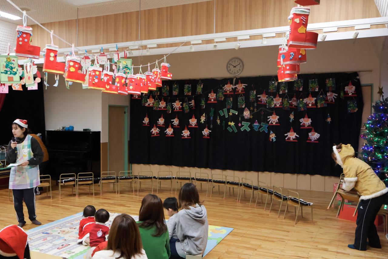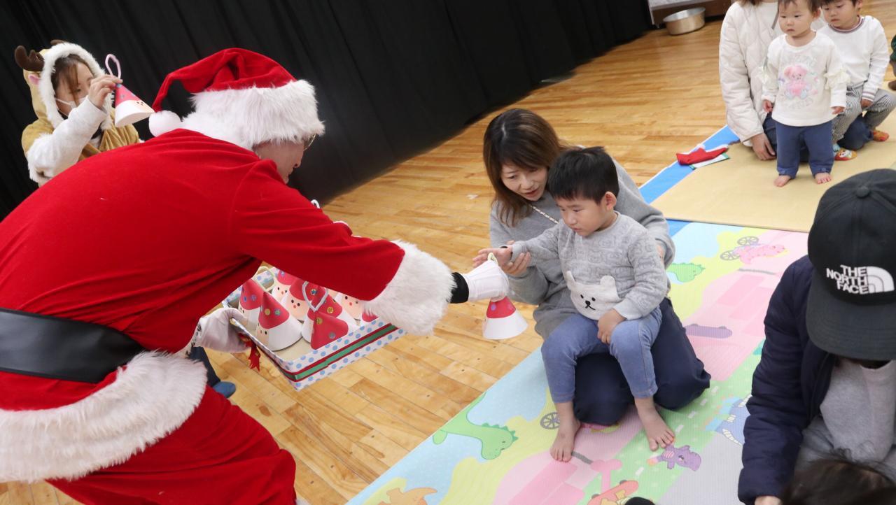 職員による出し物「あわてんぼうのサンタクロース」を見た後、次は子どもたちの番!
