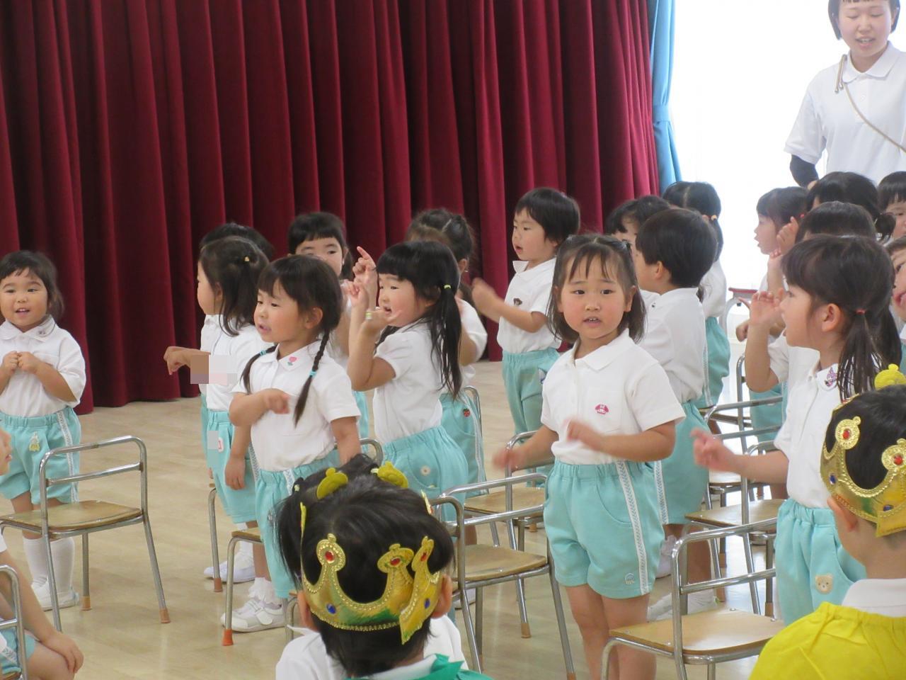 本日(5/19)、幼児クラスが遊戯室に集まり、5月の誕生会を行いました🎂