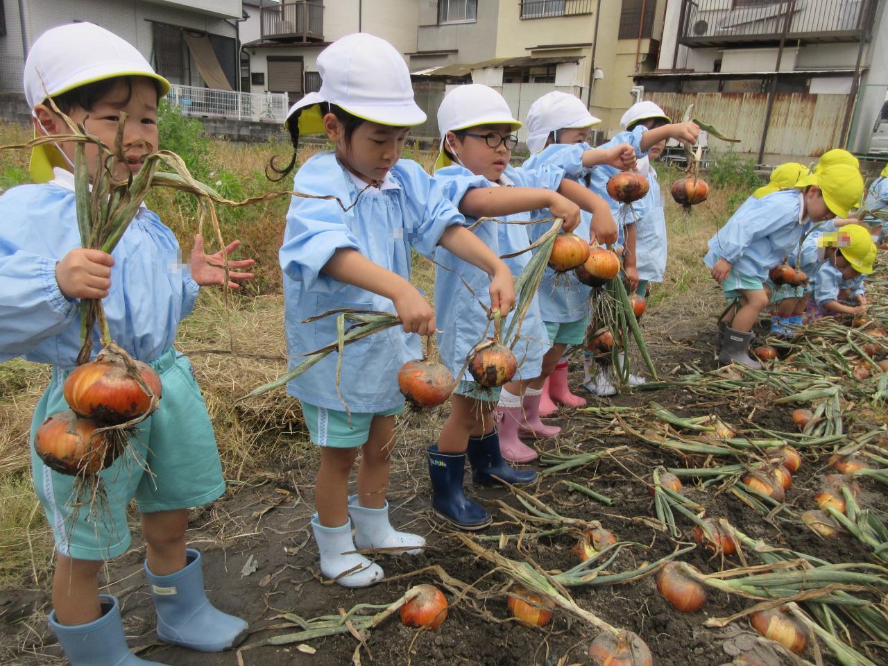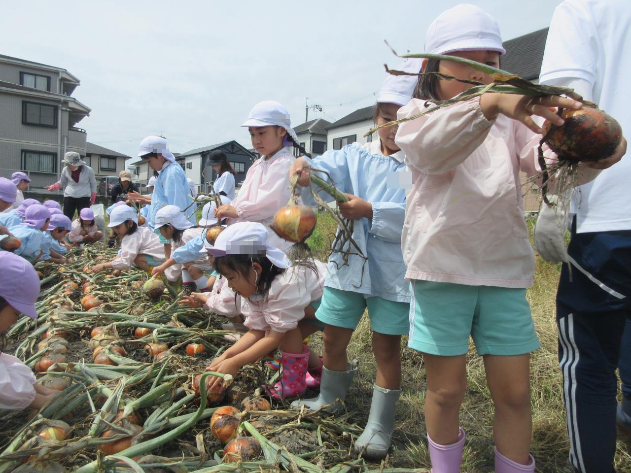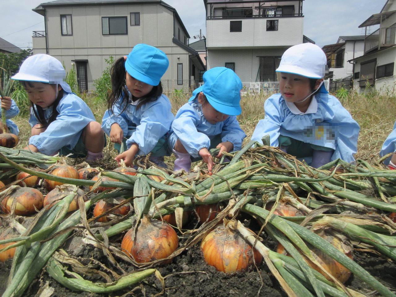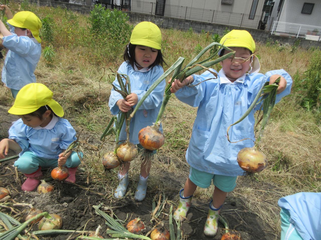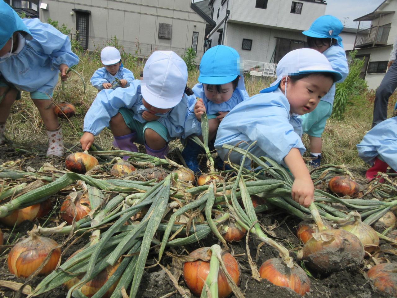 本日5/27(火)、幼児クラスの子どもたちが、保育園の近くにある園の畑で「玉ねぎ引き」に出かけました♪