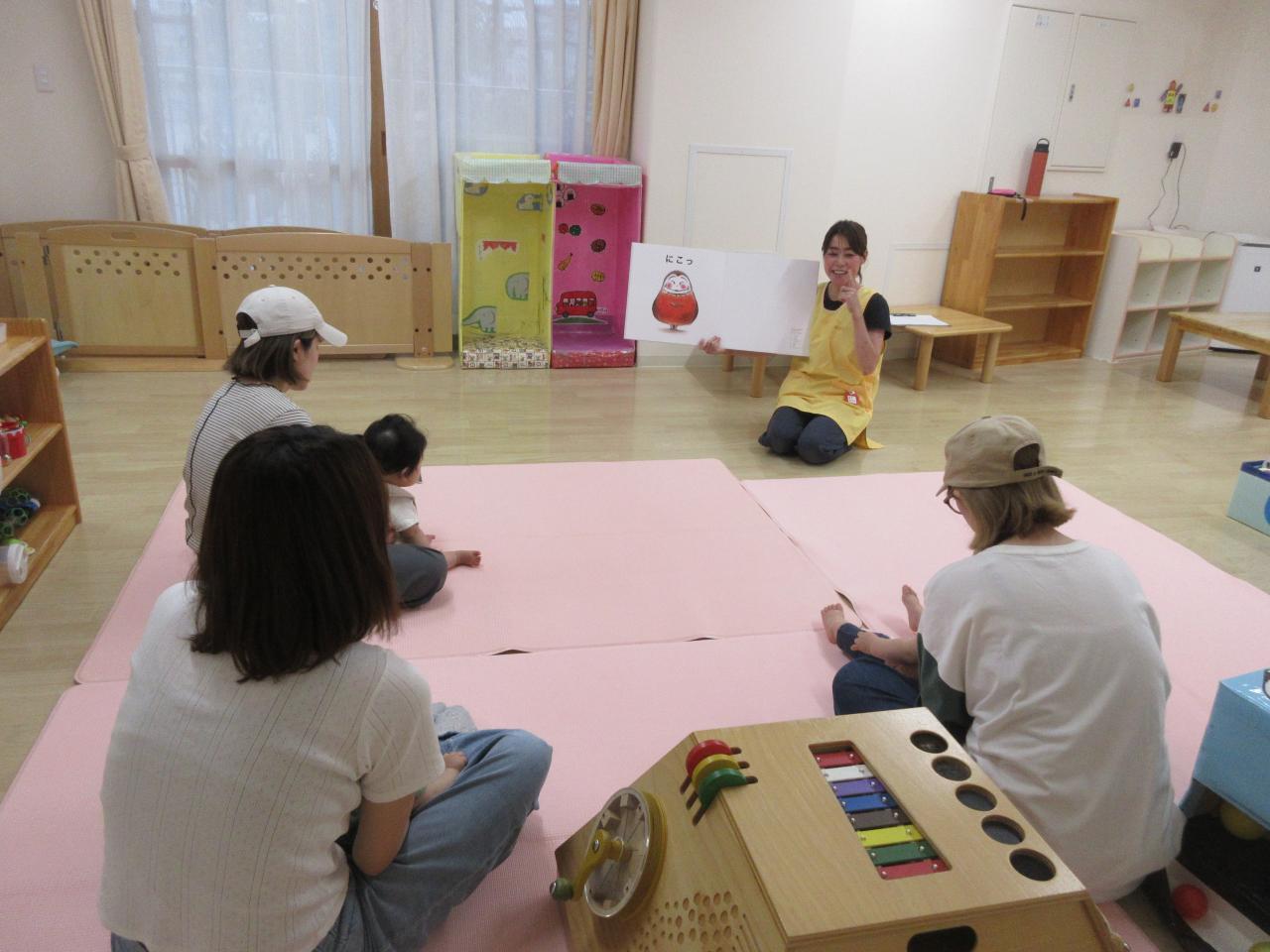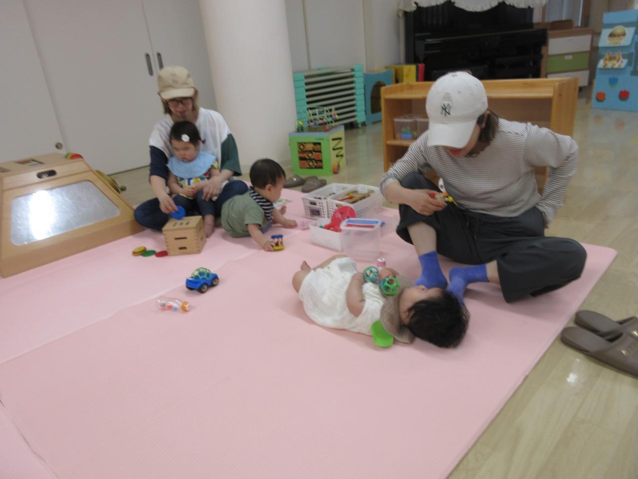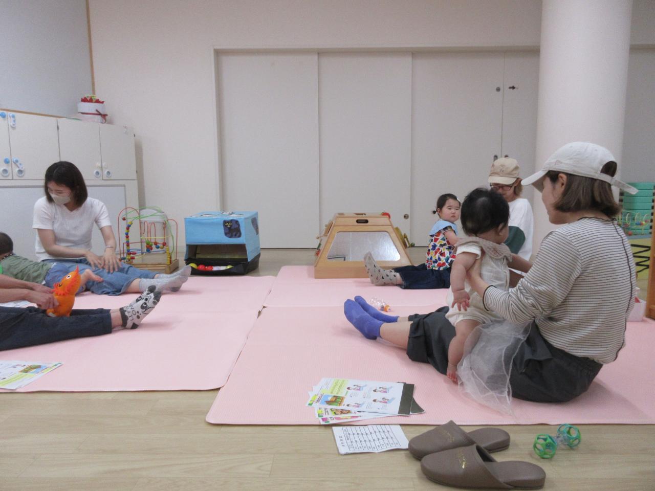 お母さんと向い合わせになりスキンシップをとる中で、緊張していたお友だちも笑顔が見られ、楽しいひと時の時間になりました✨
