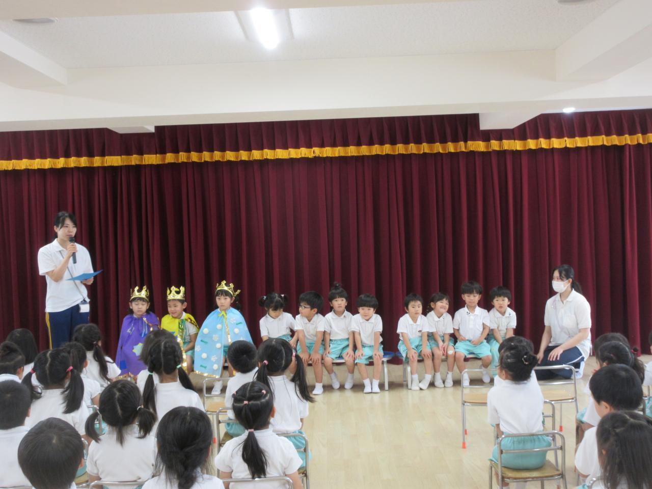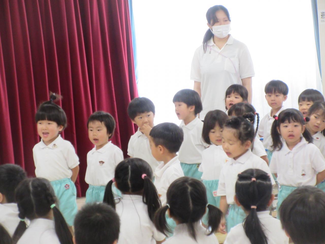 本日6/16、幼児クラスのお友だちが遊戯室に集まり、6月生まれのお友だちの誕生会を行いました🎂