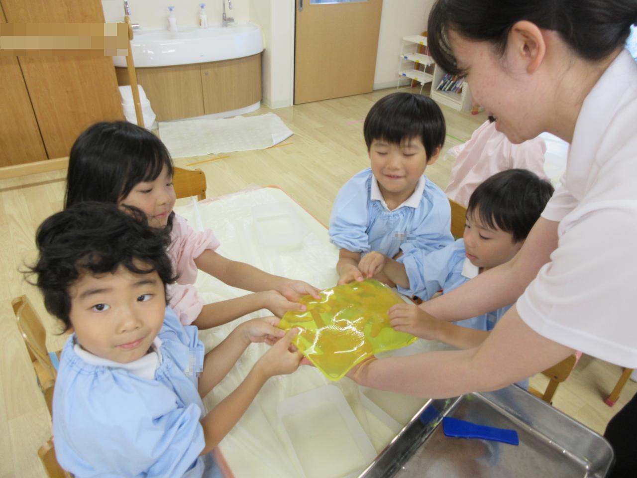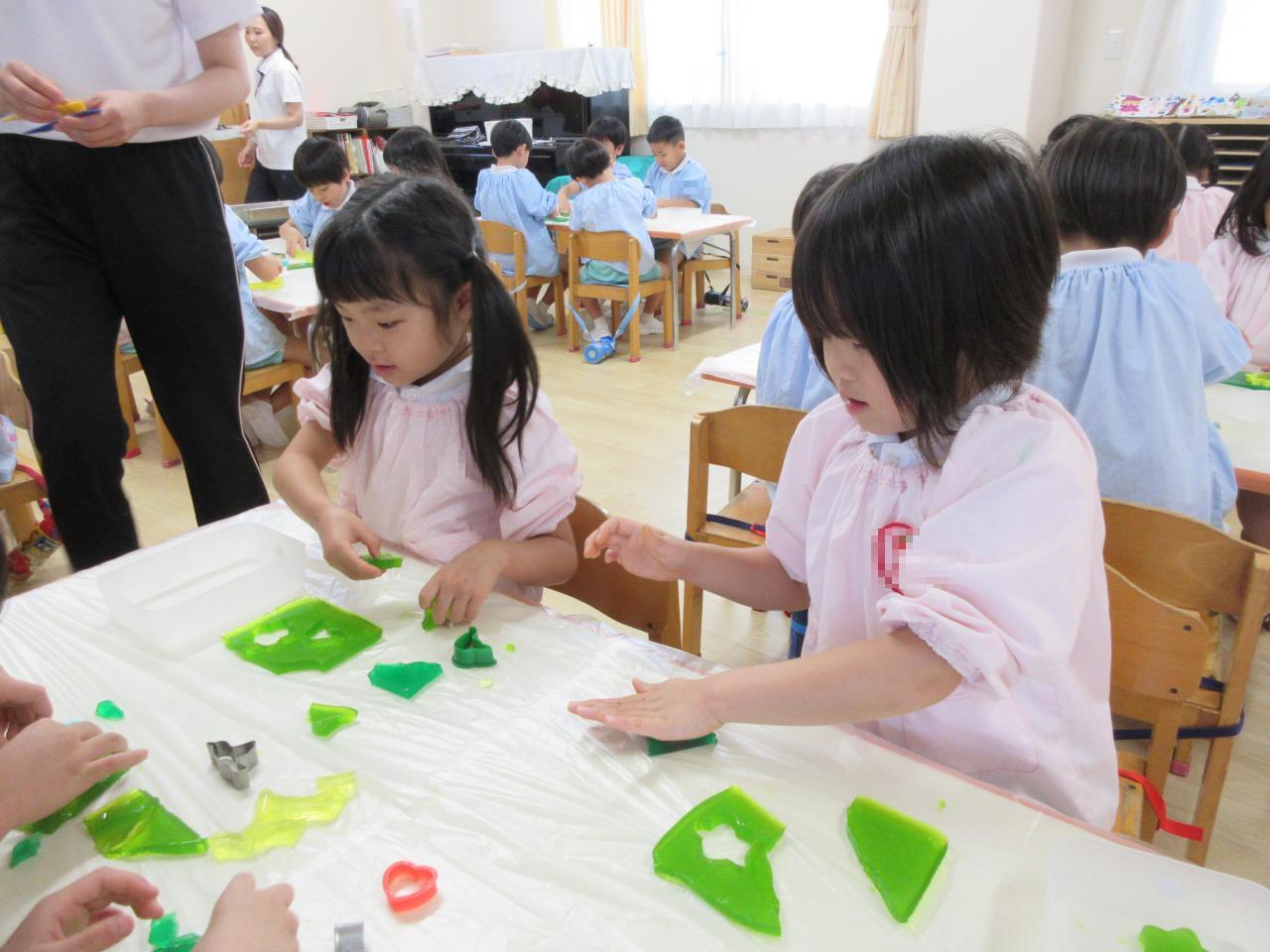 先日(7/25)、5歳児クラスで寒天遊びをしました🍀
