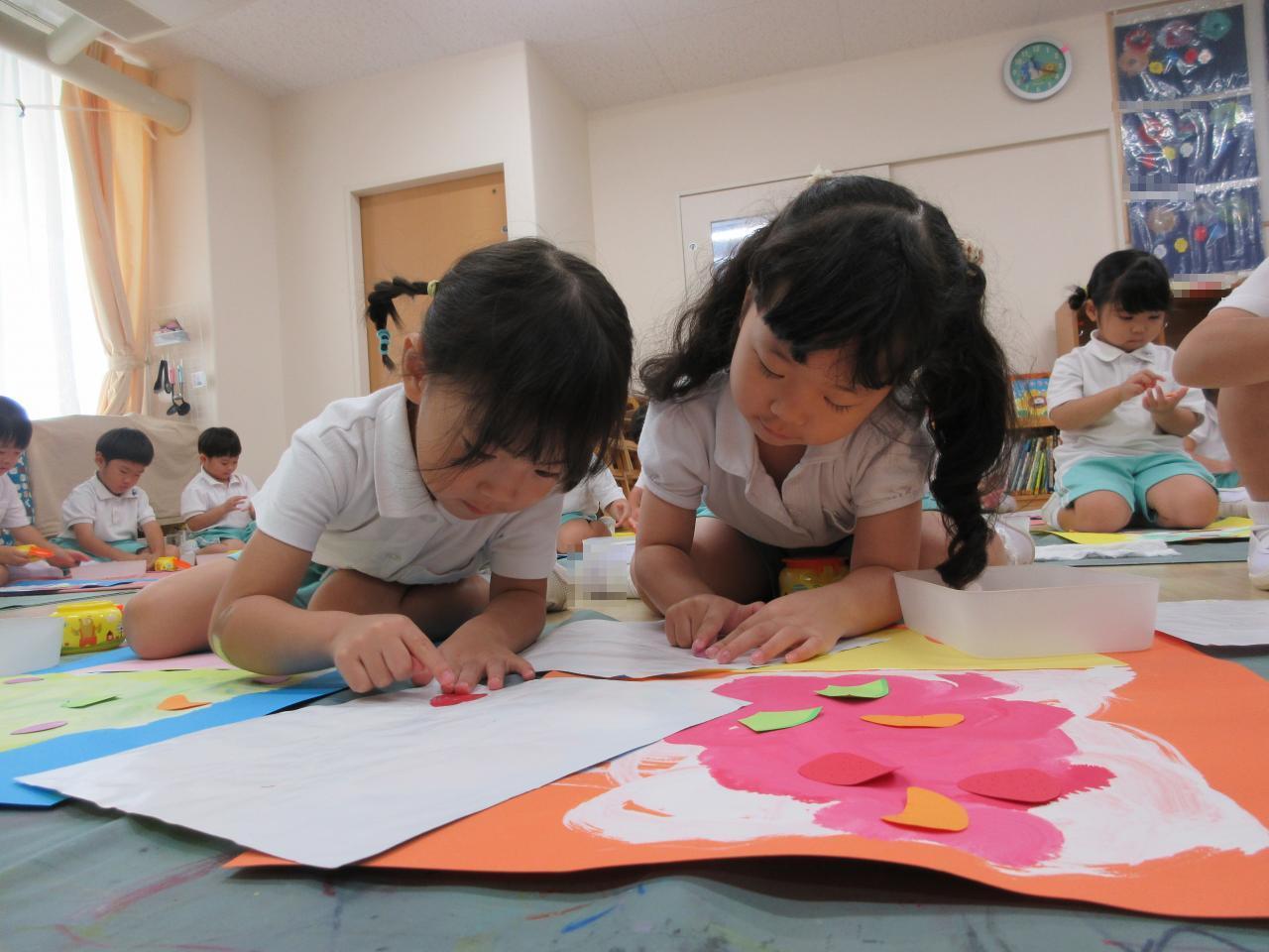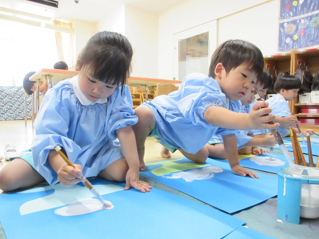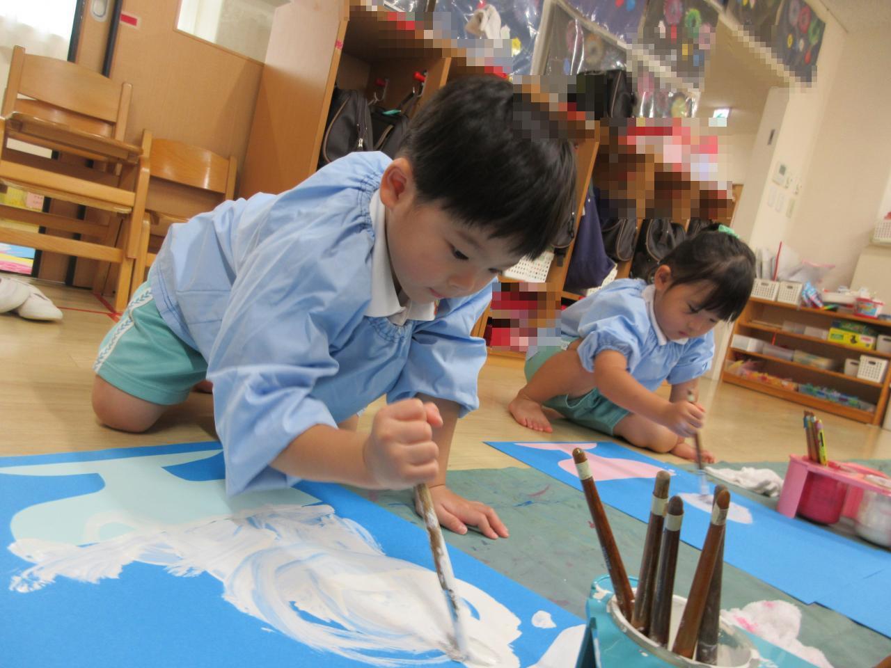 「シロップいっぱいかける!」「おいしそう~!」と、とっても楽しそうに画用紙いっぱいかき氷を描いていた子どもたちです✨✨