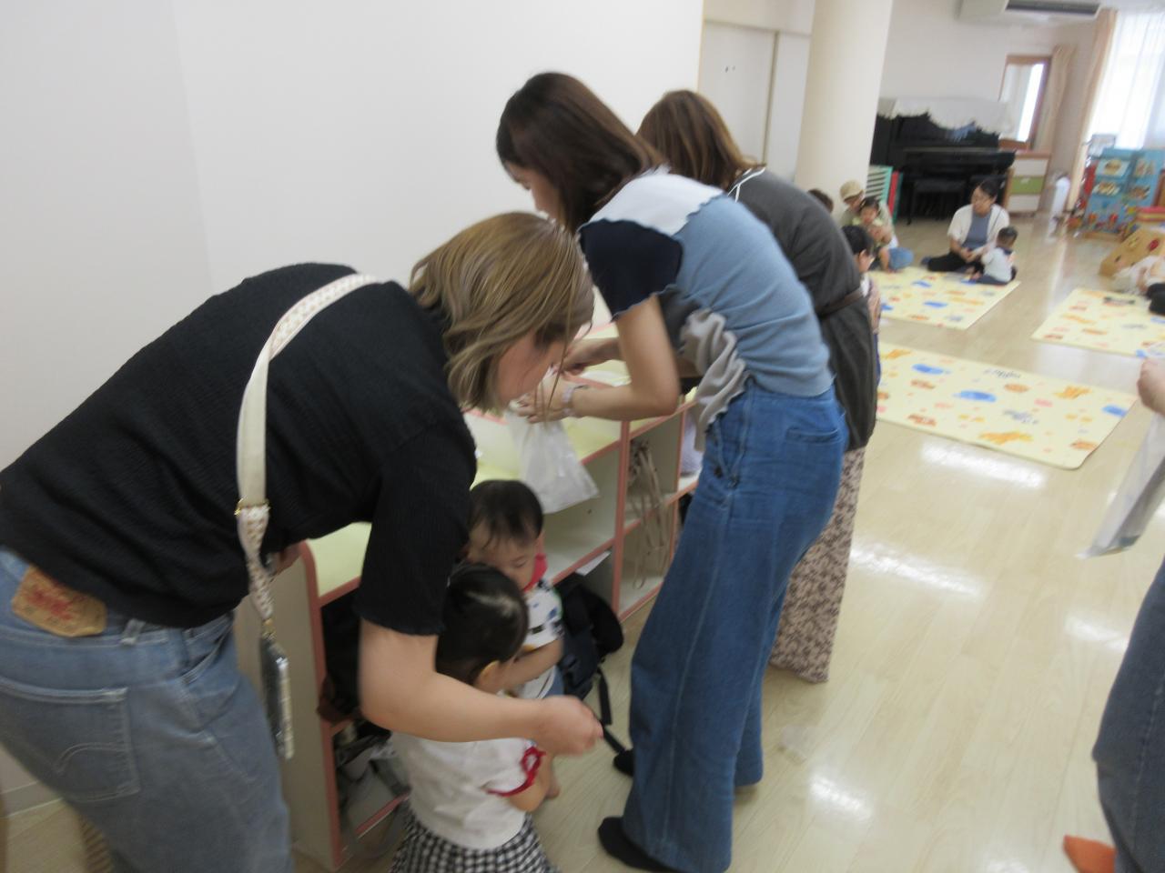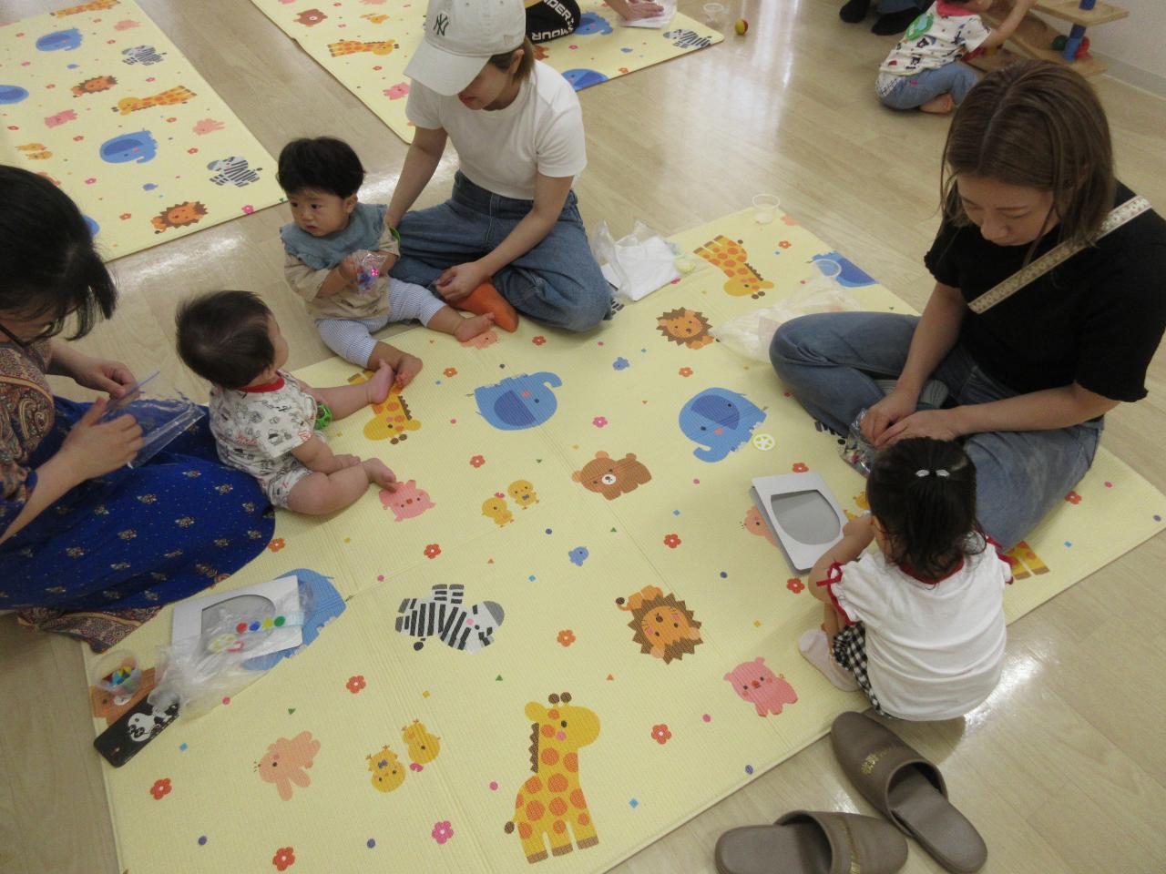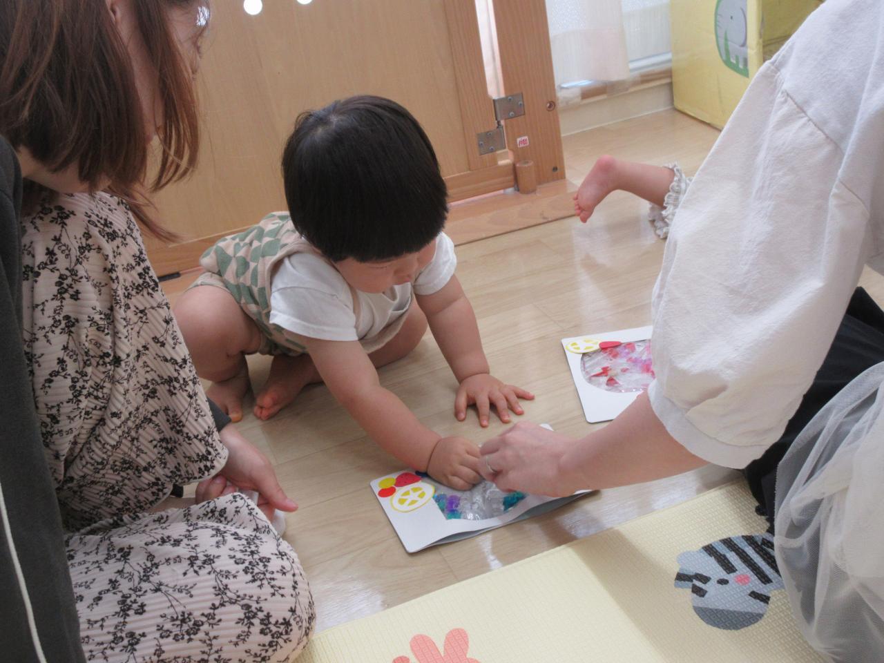 出来上がると上手~と手を叩いたり、指で触って感触を楽しみニコッとしたり、嬉しそうに持って帰る姿などがあったり、とても可愛らしかったです😄