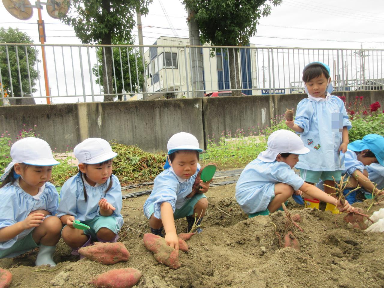 おいもごとに形や大きさ、重さなどが異なり、土の中に入っているおいもなど、普段は目にしないことを実際に体験することができ、自然と触れ合うことも出来ました!