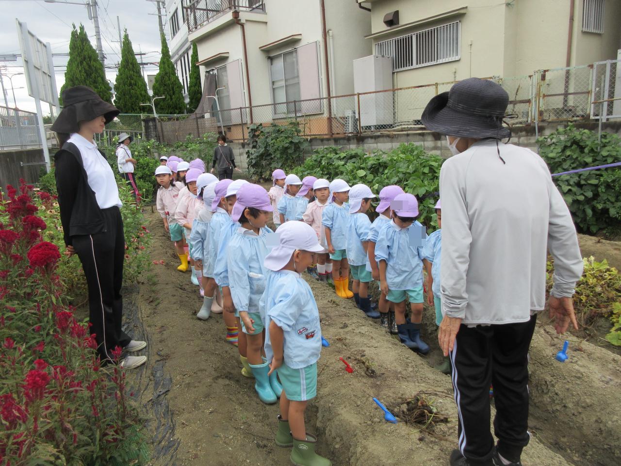 本日(9/29)、近くにある保育園の畑までおいもを掘りに行きました😀雨予報も吹き飛ばし、涼しい気候の中、行うことが出来ました✨