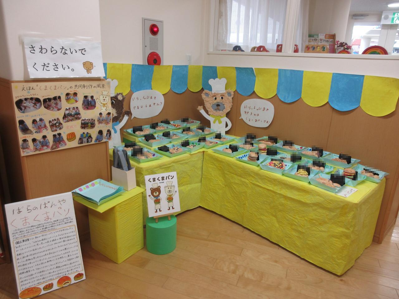 先週より、4歳児クラスの『ばらのぱんや くまくまぱん』の作品を1階ホールに飾っています🥯