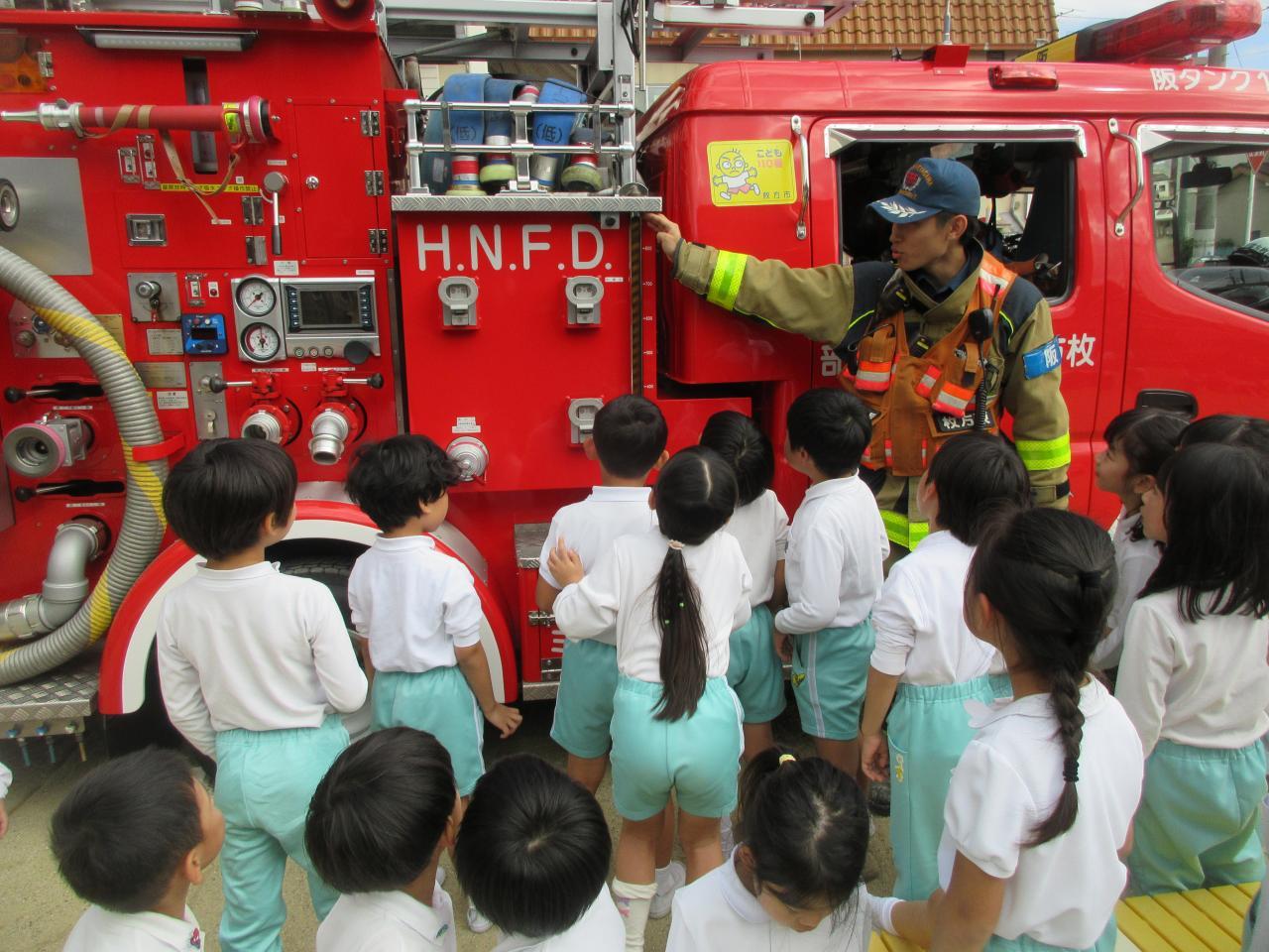 「火事になったら何分で着きますか?」「消防車には道具がいくつのってますか?」