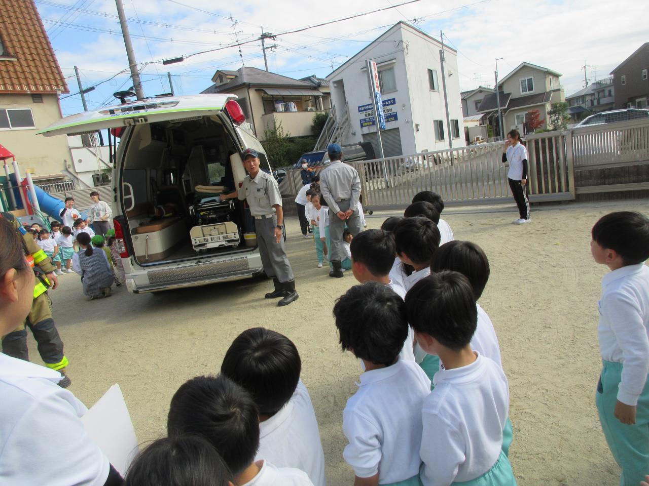 最後は、救急車や消防車、消防士の方と一緒に写真撮影ができて大喜びの子どもたちでした😊