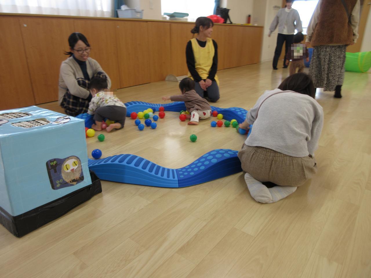 その後は、ボールプール、マットトンネル、感触マット、柔らか階段などの好きなコーナーで、お母さんやお友だちと一緒に楽しむ姿がありました‼️