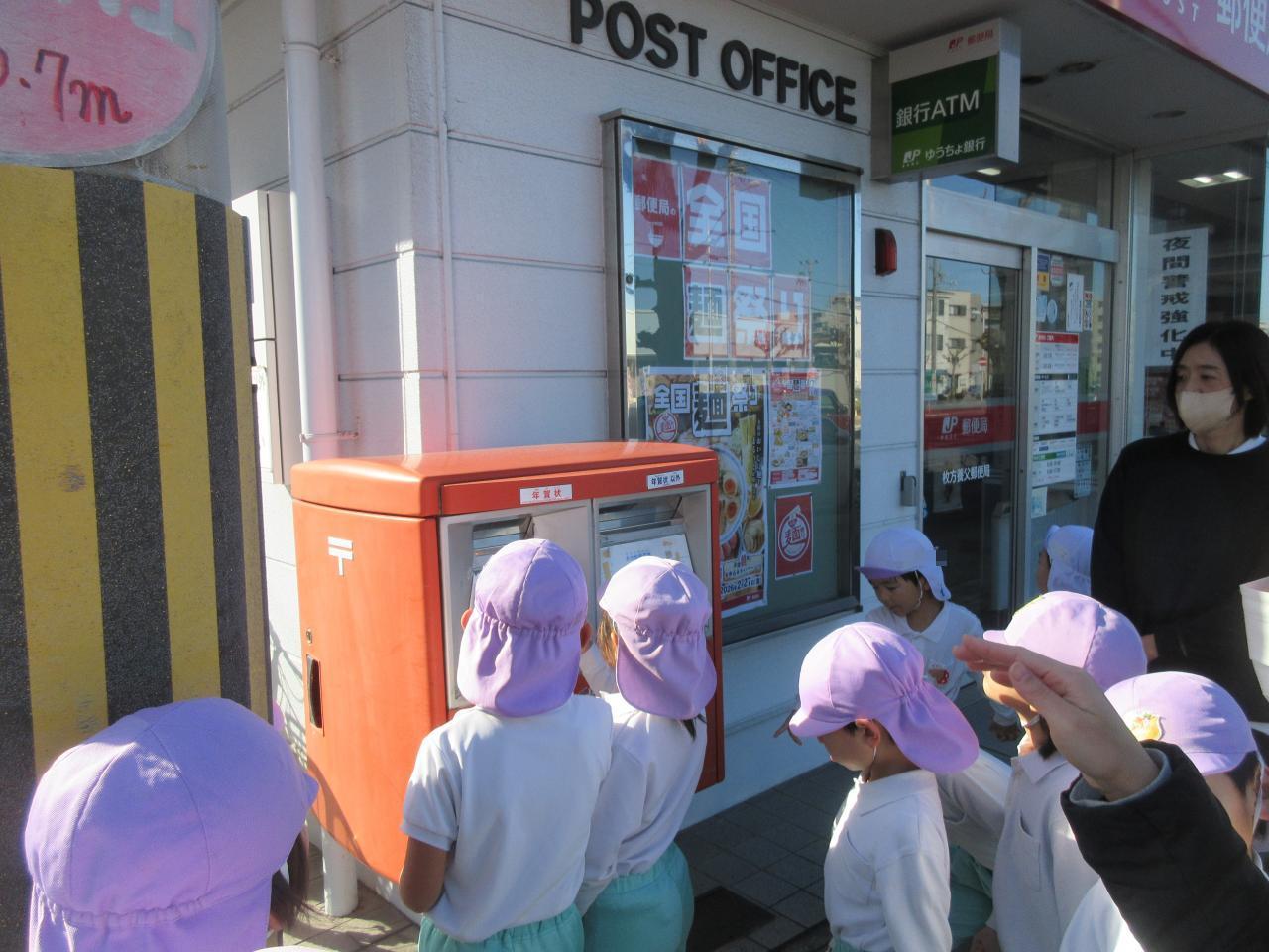 本日12/19、5歳児クラスの子どもたちが、保育園の近くの郵便局に年賀状の投函に行ってきました🙂